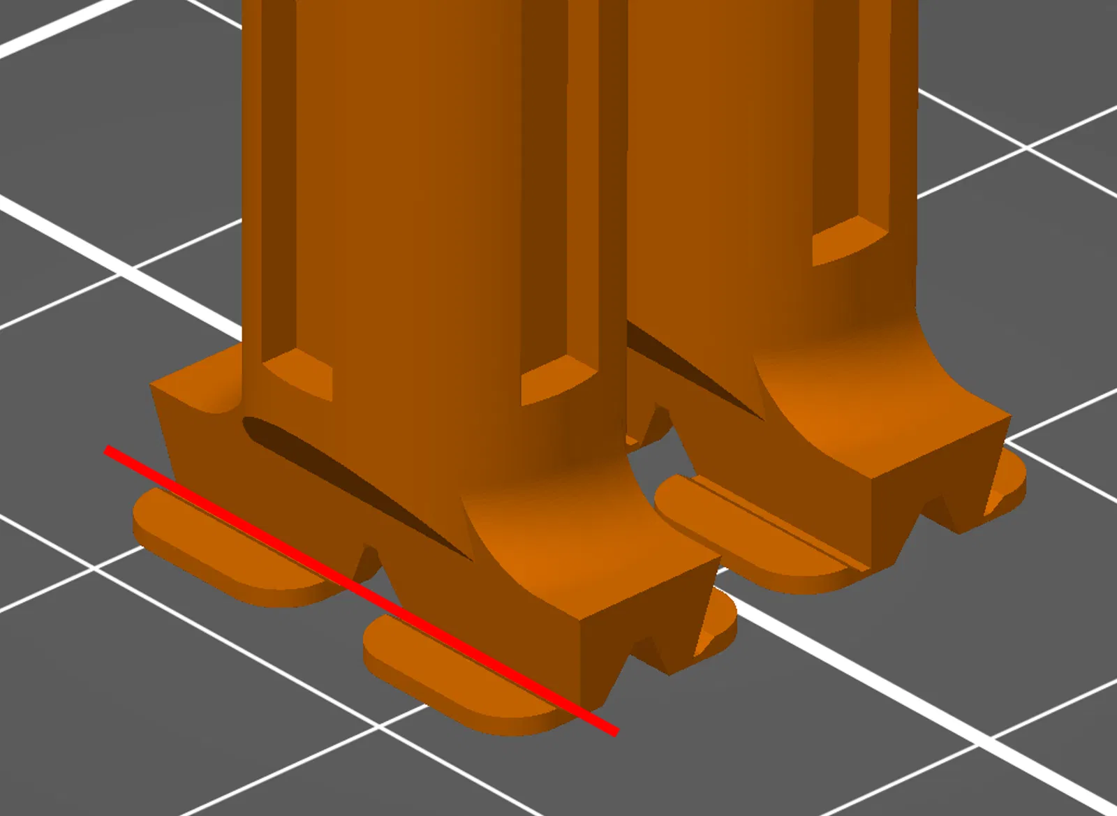 Lưu ý: bản S-version (cải tiến) có mấy cái "tai" nhỏ để dễ bám dính lên bàn in, mấy cái này phải cắt bỏ theo đường đỏ trên ảnh nha, dùng dao bén cắt.