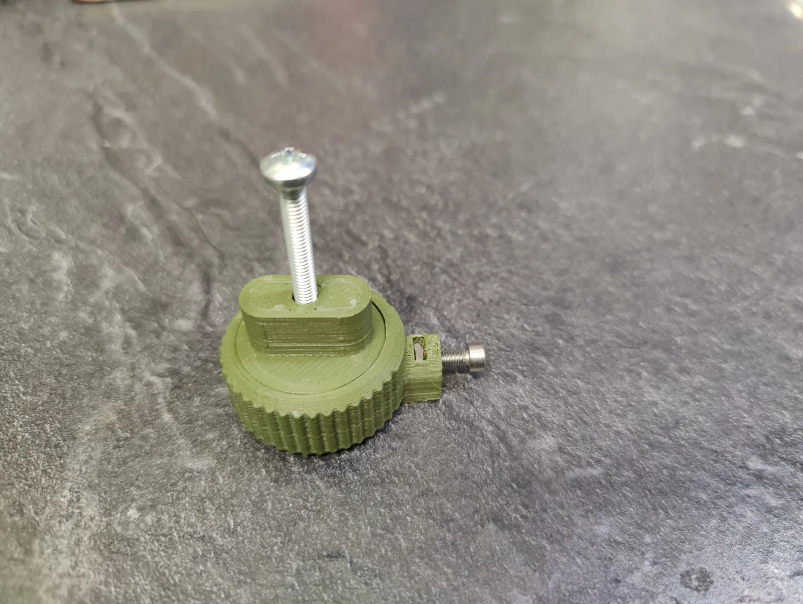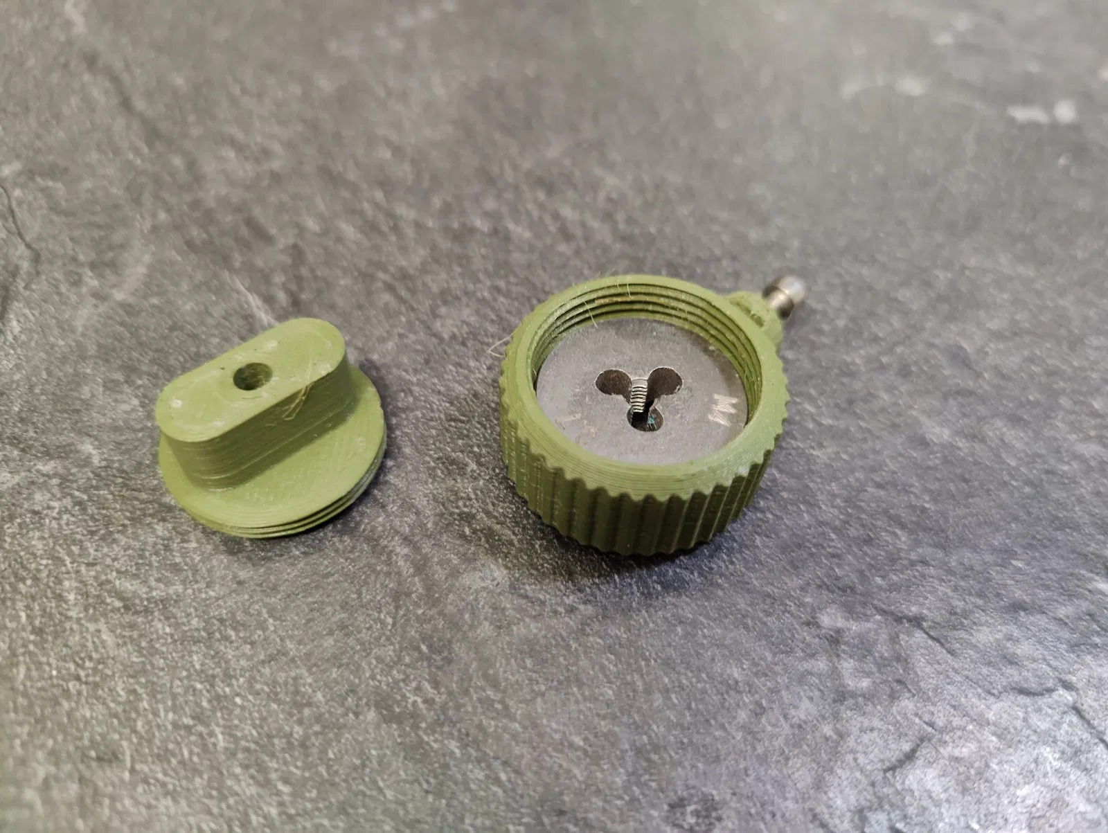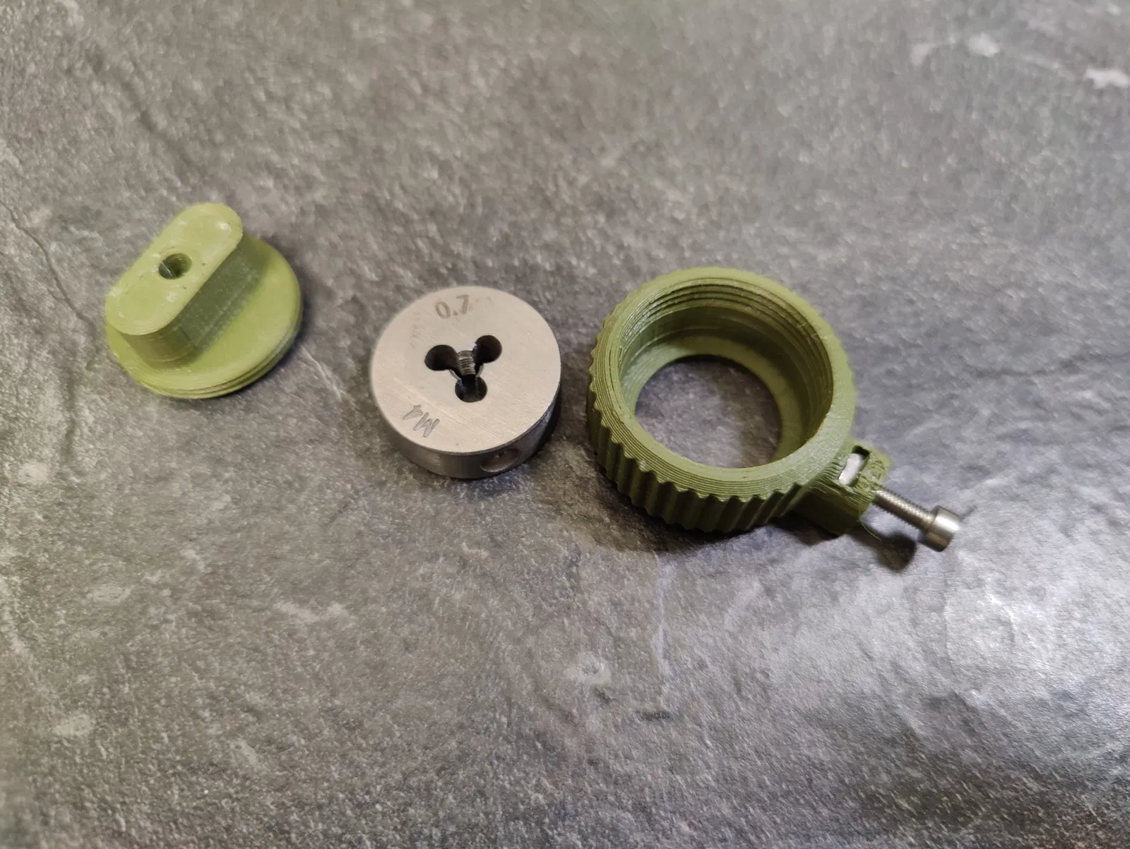 Tao có mấy con ốc M3 với M4 bị tòe ren, mà còn xài được. Tao có cái mũi ta rô (threading die) mà xài không có cái ê-tô (vise) thì hơi bị khó. Nên tao làm cái này để canh con ốc vô cái mũi ta rô cho dễ. M3 thì xài ngon lành, mà M4 thì thấy hơi cứng, chắc cũng phải xài ê-tô luôn. Hoặc là làm cái đế bự hơn để siết cho chắc.