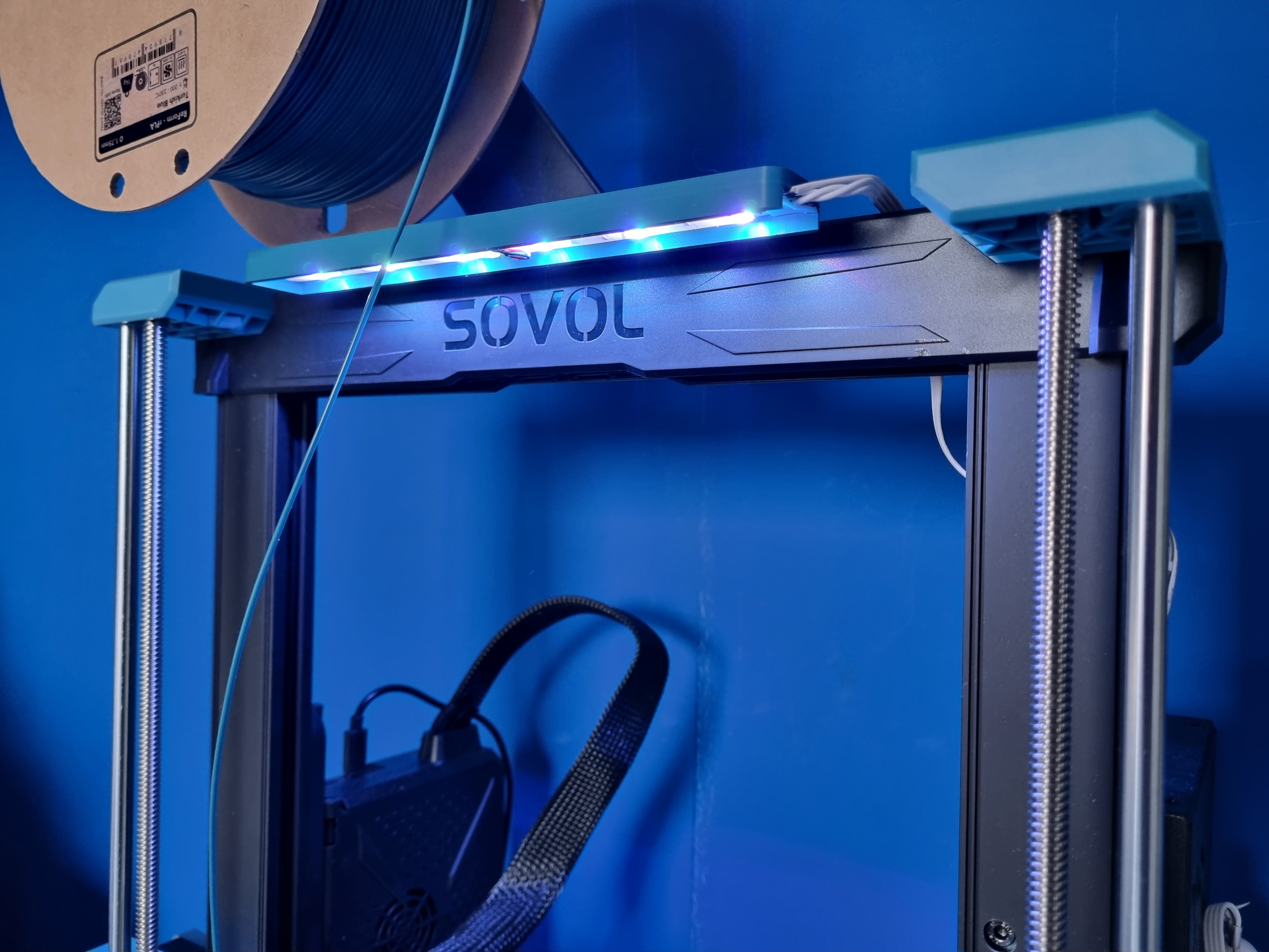 Giá đỡ dải LED đơn giản, gọn gàng cho máy Sovol SV06. Thiết kế vừa hai dải LED 9mm, tận dụng ốc vít có sẵn, không cần thêm phần cứng. Có file STEP để tùy chỉnh.