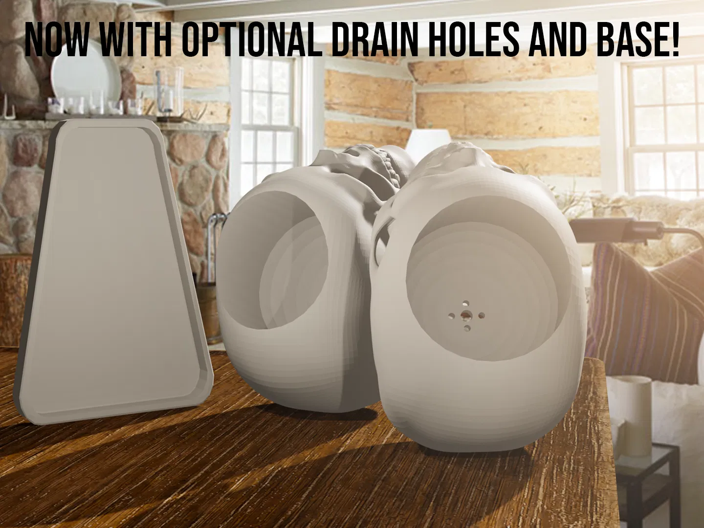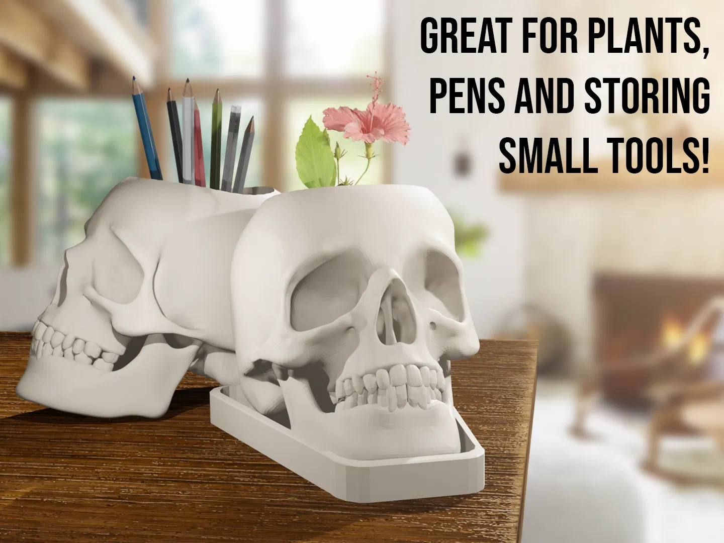 Chậu cây/cốc cắm bút hình đầu lâu chân thật này có bản liền khối và bản có lỗ thoát nước cho cây nha! Tao biết mà, mấy bà hay tưới cây bị úng nước, hồi xưa tui cũng làm chết một cây xương rồng rồi.