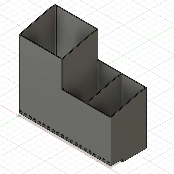 Ban đầu mình có làm thêm phần nối hai cái khay lại với nhau, nhưng nó không hoạt động như mong đợi nên mình đã gỡ bỏ trước khi tải mô hình lên đây. Bạn cứ tự nhiên chỉnh sửa, mình cũng có tải file STEP lên luôn. Mình thì chỉ dán keo lại thôi.