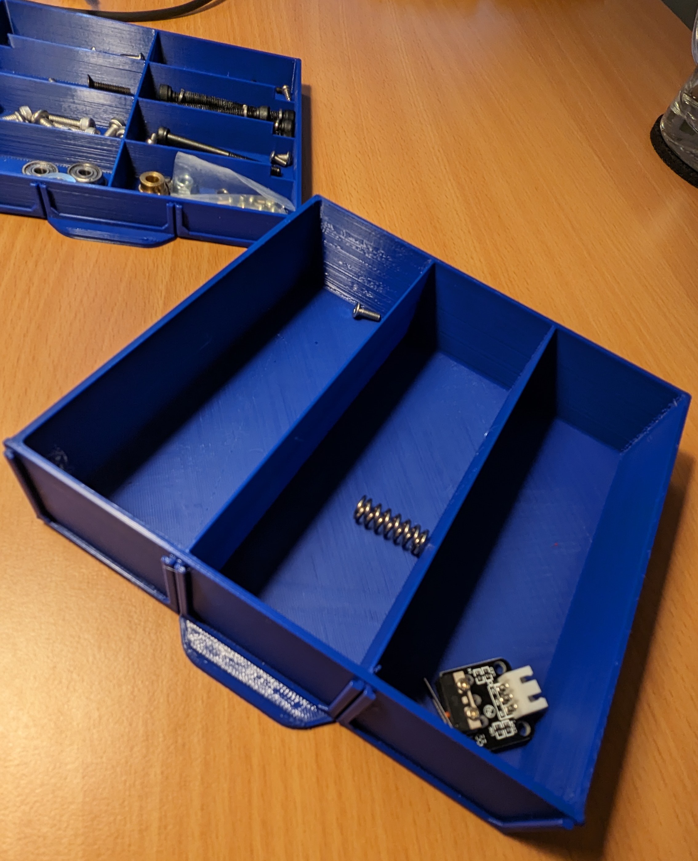 Tao làm cái script OpenScad để tùy biến cho cái Drawer2x2x1 và Drawer2x2x2. Mấy cái ngăn kéo này có thể xếp chồng lên nhau, tha hồ chứa linh kiện điện tử nha mấy ông!