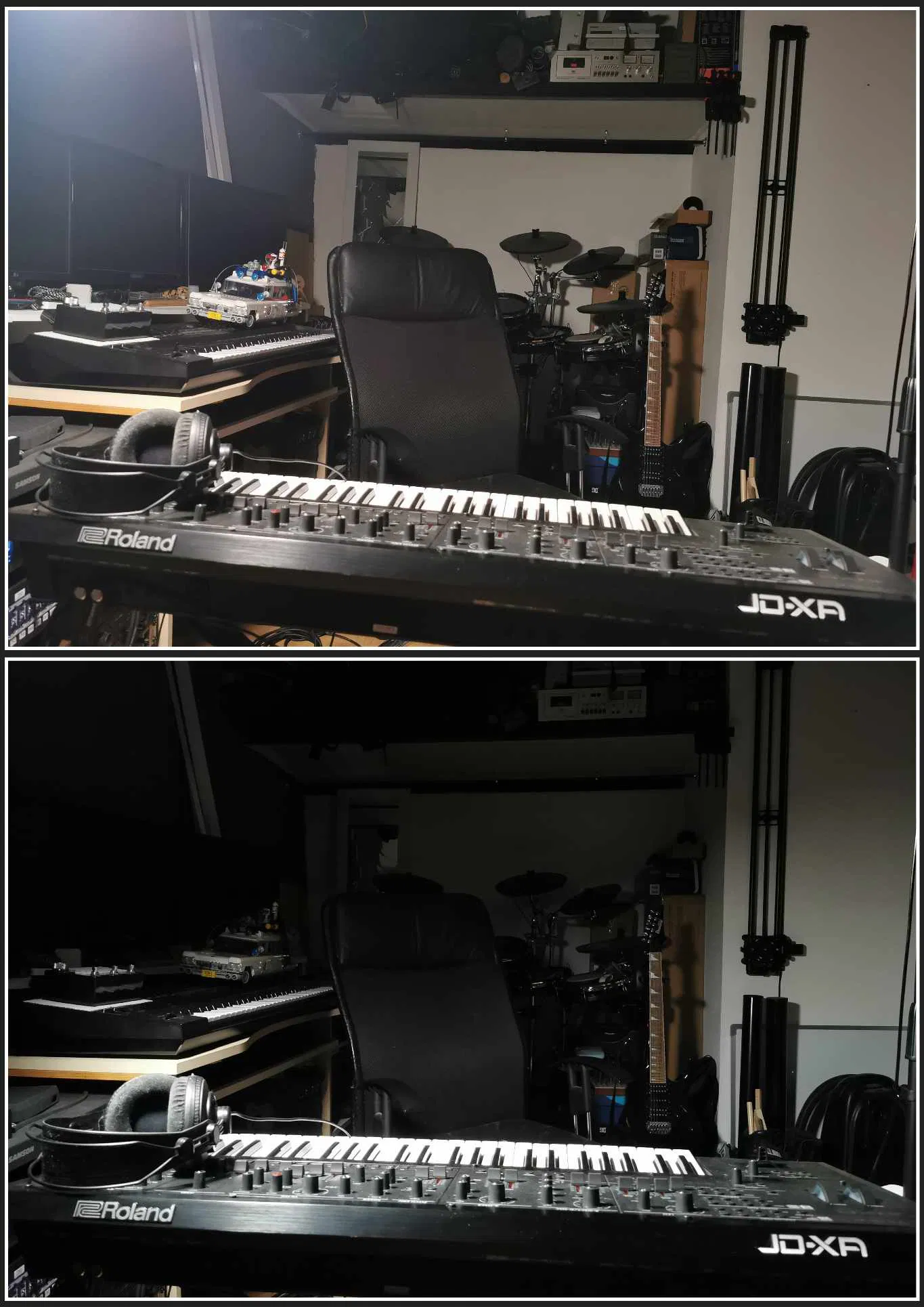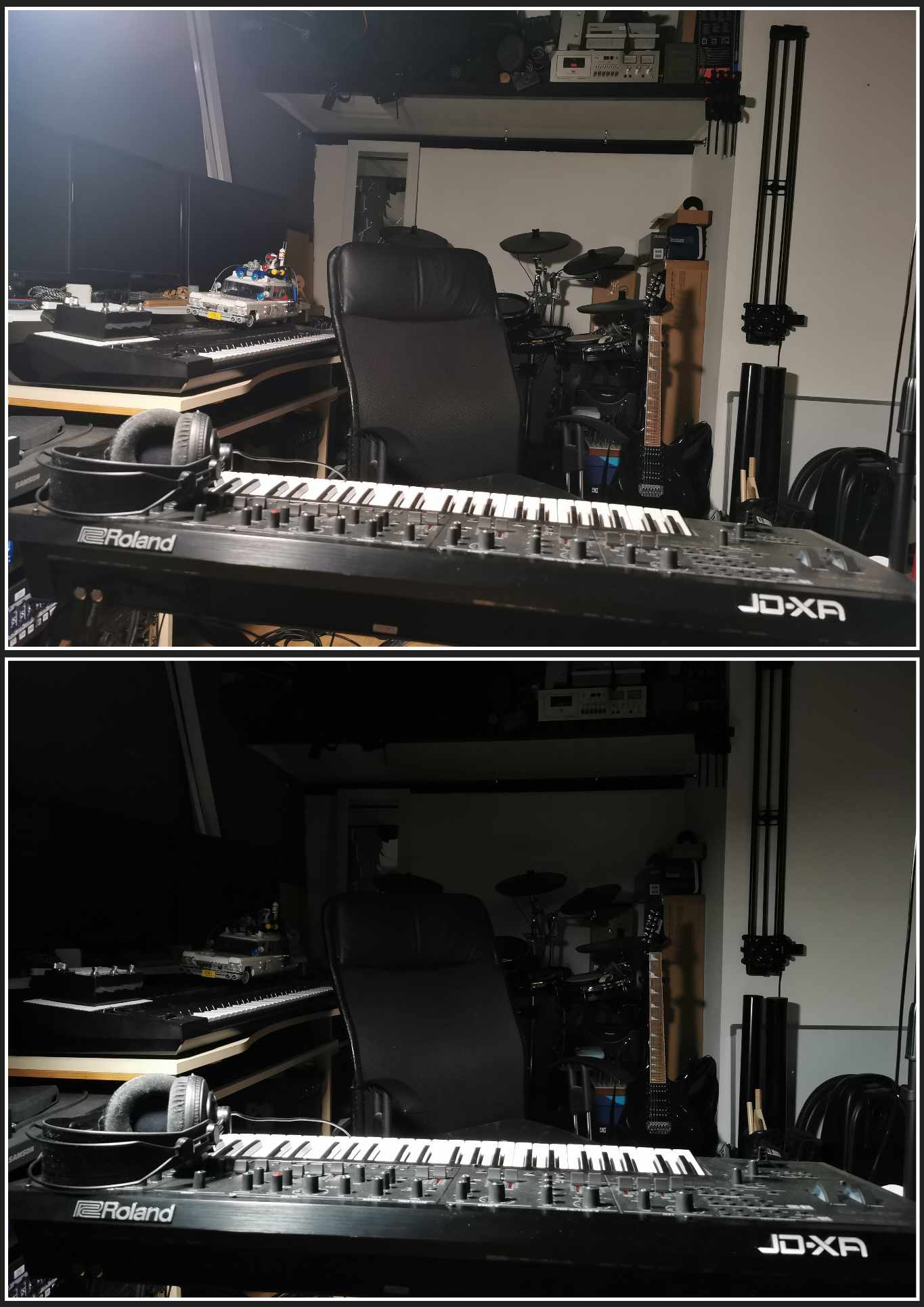 Hình thứ ba, ở trên là không có, ở dưới là có cái lưới này. Đèn để cùng vị trí, chỉnh cùng độ sáng.