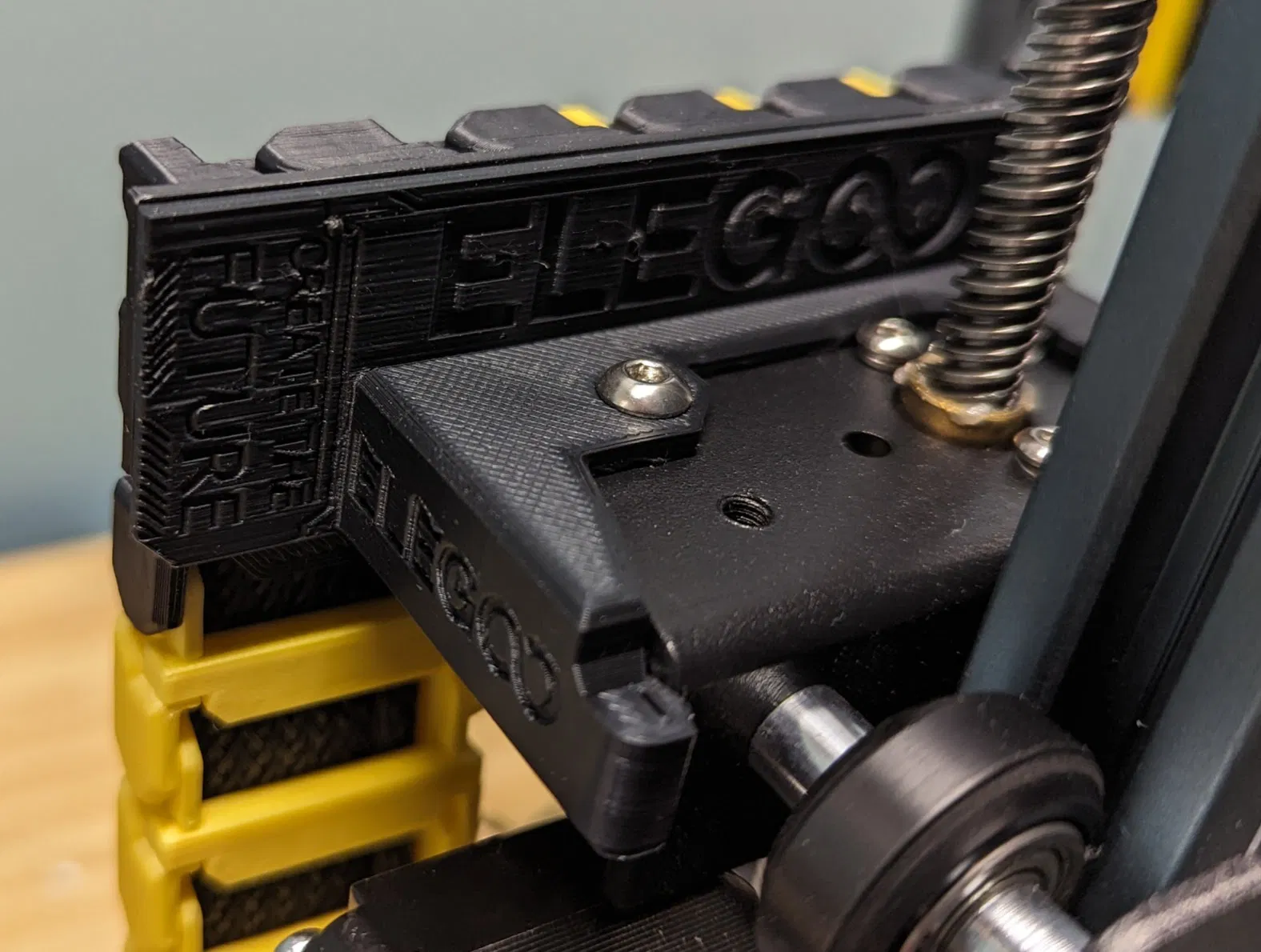 Cái này là làm lại từ bản gốc, có link ở đây nè. Bạn sẽ cần cái đế gắn dây xích cáp để gắn nó vô. Đây là cái đế gắn lên khung của máy Elegoo, rồi bạn dán cái đế gắn dây xích cáp lên đó.