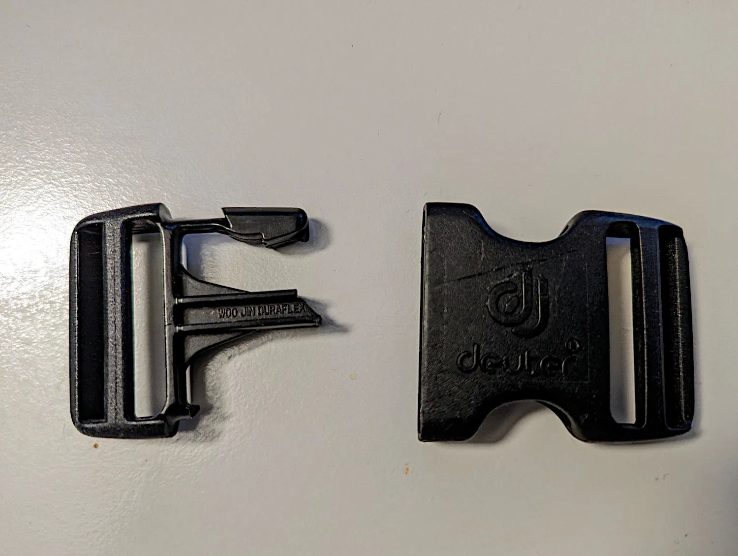 On my Deuter backpack, both parts of the hip belt buckle were broken.