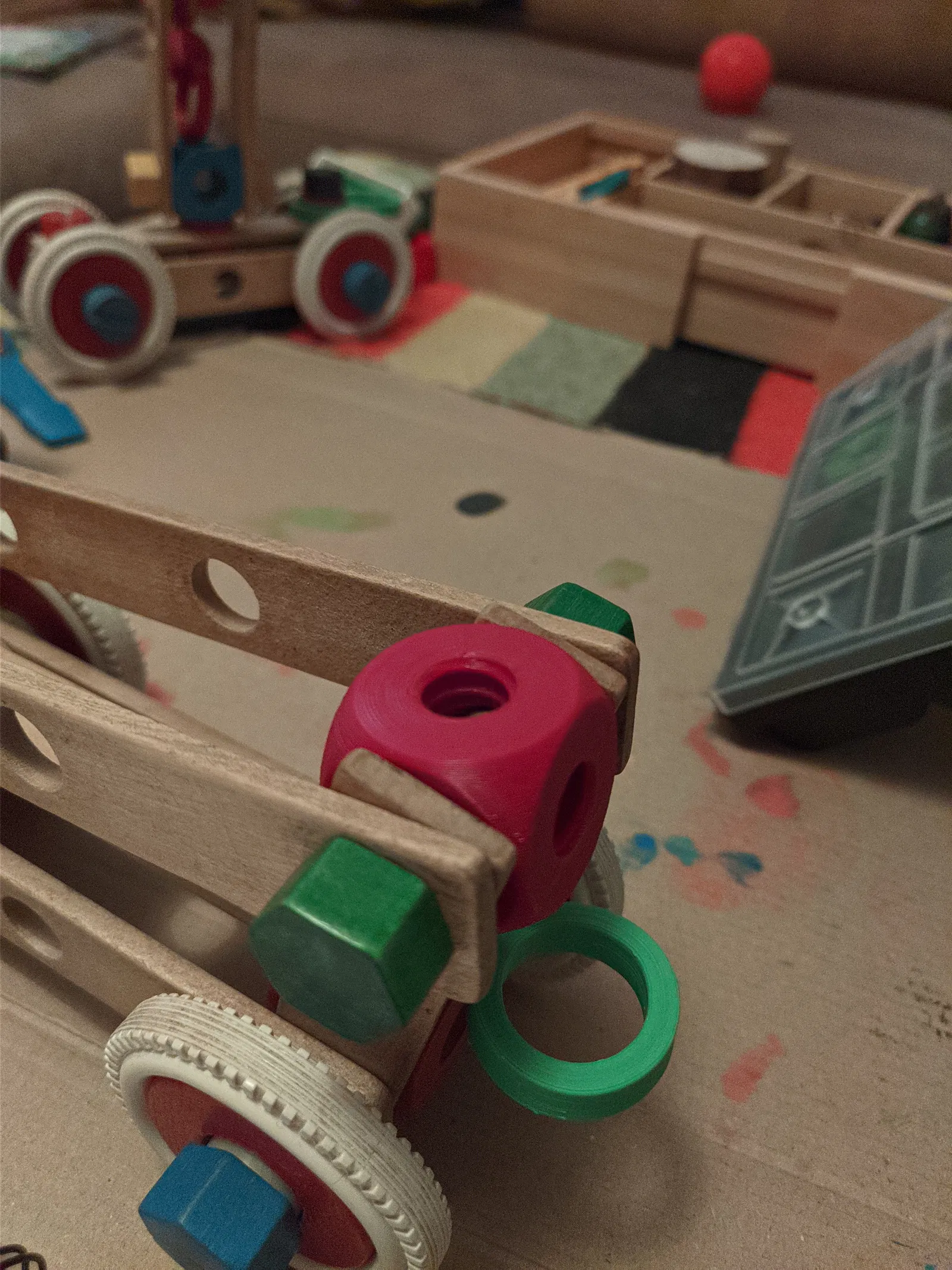 Khối này giống như khối gốc nhưng có thêm ren ở tất cả các lỗ trên mọi mặt. Rất phù hợp cho các dự án xây dựng và đồ chơi sáng tạo, giúp bé tha hồ vặn xoắn, lắp ghép.