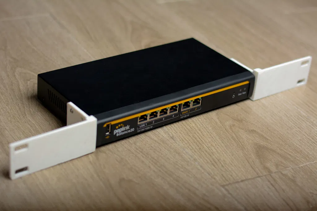 Giá đỡ Rack 1U cho thiết bị mạng Peplink 20/30 và 30 LTE (BPL-021, BPL-031-LTE). In bằng PLA, không cần raft hay supports, độ phân giải 0.3, infill 60. Hoàn hảo cho việc sắp xếp gọn gàng thiết bị mạng của bạn trong tủ rack.