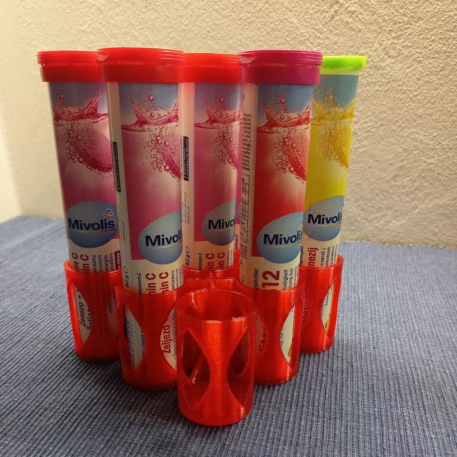 Một chỗ đựng đơn giản cho một đống viên sủi vitamin. Giữ cho ngăn kéo vitamin của bạn gọn gàng, và có thêm phiên bản nhỏ hơn cho những ai không muốn quá khỏe.