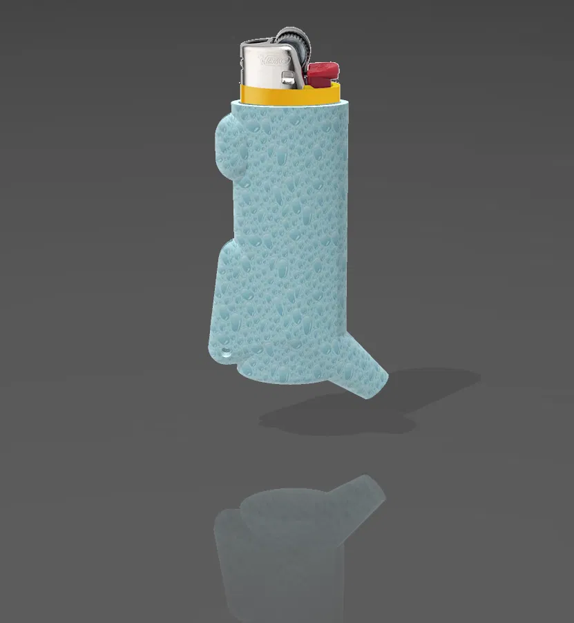 Mô hình 3D ống bọc bật lửa kiểu tẩu, dùng dây kẽm hoặc kẹp giấy làm que châm và đinh tán làm đầu dập. Thiết kế vừa vặn với bật lửa bỏ túi, lý tưởng cho người hút thuốc.