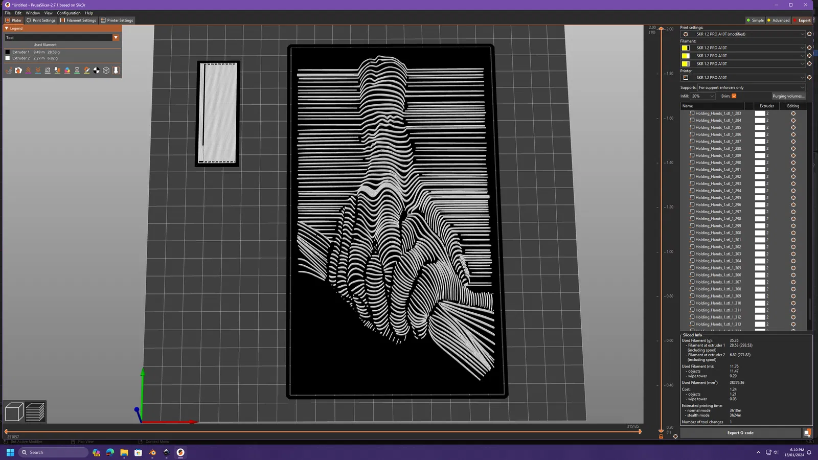 Mô hình "Holding Hands 1" là một vật trang trí độc đáo, thể hiện tình cảm gắn kết. Dễ in với PLA, kích thước 110.63mm x 200mm. Có hướng dẫn chi tiết cho cả máy in đơn và đa vật liệu. Thích hợp làm đồ decor bàn làm việc, văn phòng hay quà tặng ý nghĩa.