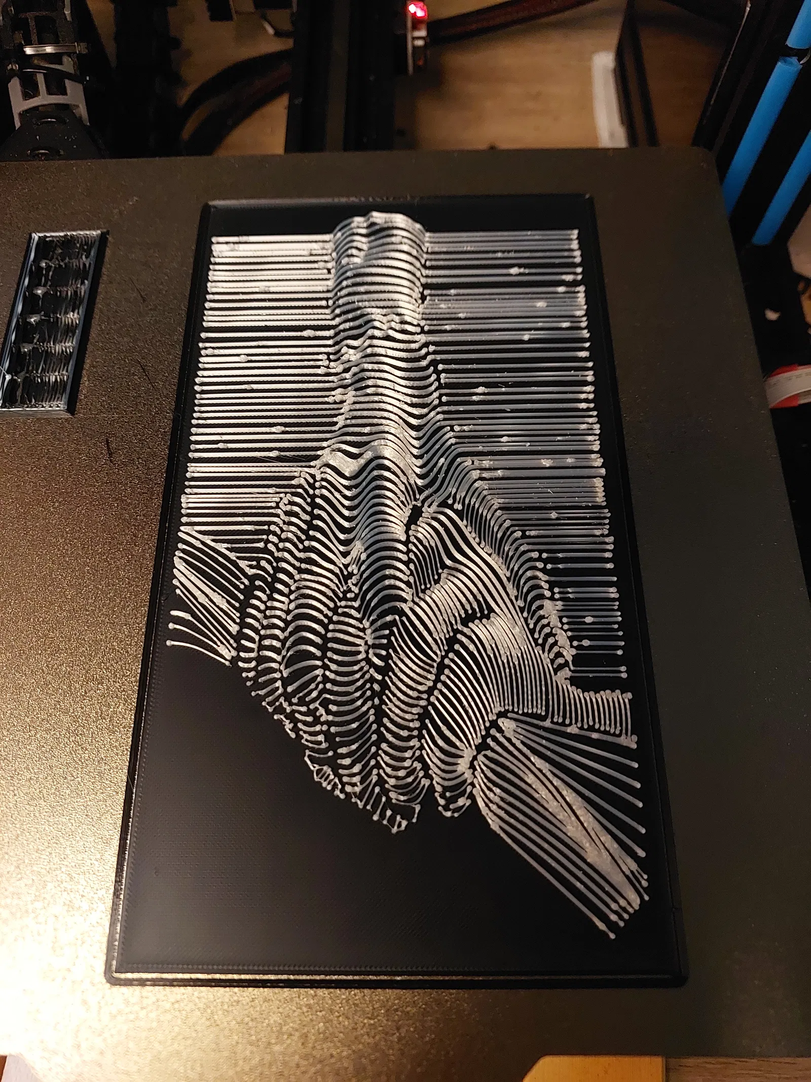 Đối với máy in đa vật liệu (multi-extruder), tách ra thành các phần rồi chọn phần nào muốn in bằng màu thứ hai (phần đầu tiên thường là màu nền, tất cả các phần còn lại thường là màu trên).