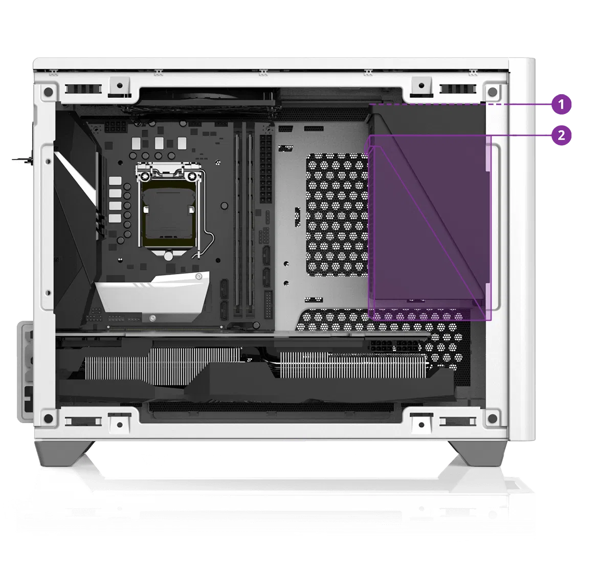 Để phù hợp với nhiều loại cấu hình máy, chúng tôi đã tạo ra 2 phiên bản của bracket nguồn ATX. Hãy chọn phiên bản phù hợp tùy thuộc vào chiều dài của card đồ họa, bộ nguồn và tùy thuộc vào số lượng cũng như vị trí của các quạt được lắp trong hệ thống.