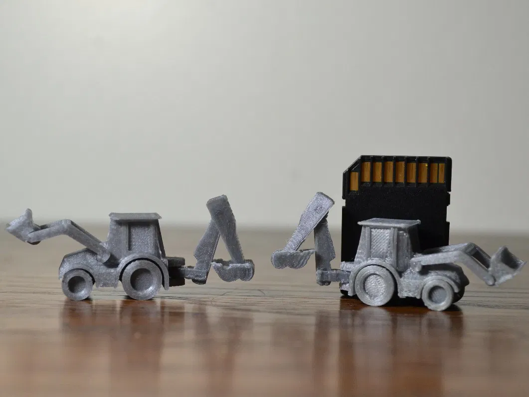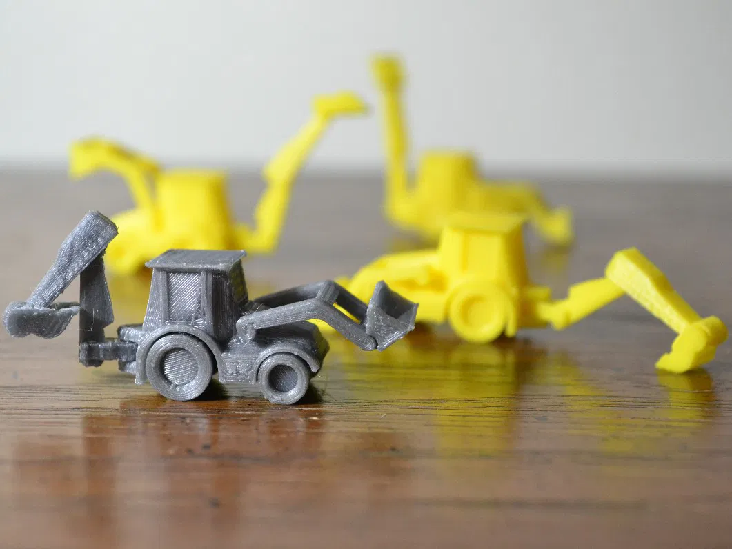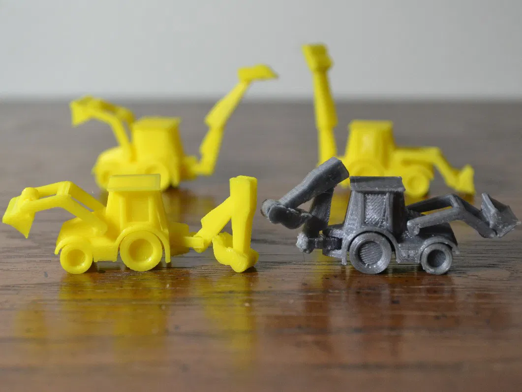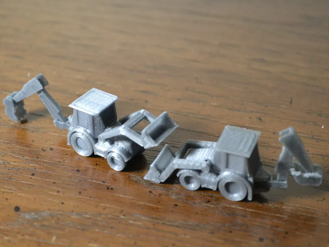 Độ khít của mấy bộ phận trên cái máy xúc lật này á, nếu mà muốn mấy cái khớp nó cử động được thì bạn phải in bằng cái đầu phun nhỏ, cao độ lớp là 1mm, hoặc là phóng to cái mô hình lên.