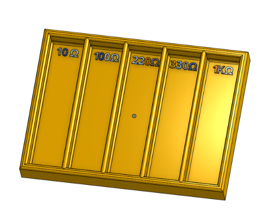 Hộp / Khay đựng điện trở 10 & 5 khe. Kích thước 18cm x 6.8cm. Tôi dùng sợi dây thun bản rộng để đóng nắp cho mấy cái nhỏ.