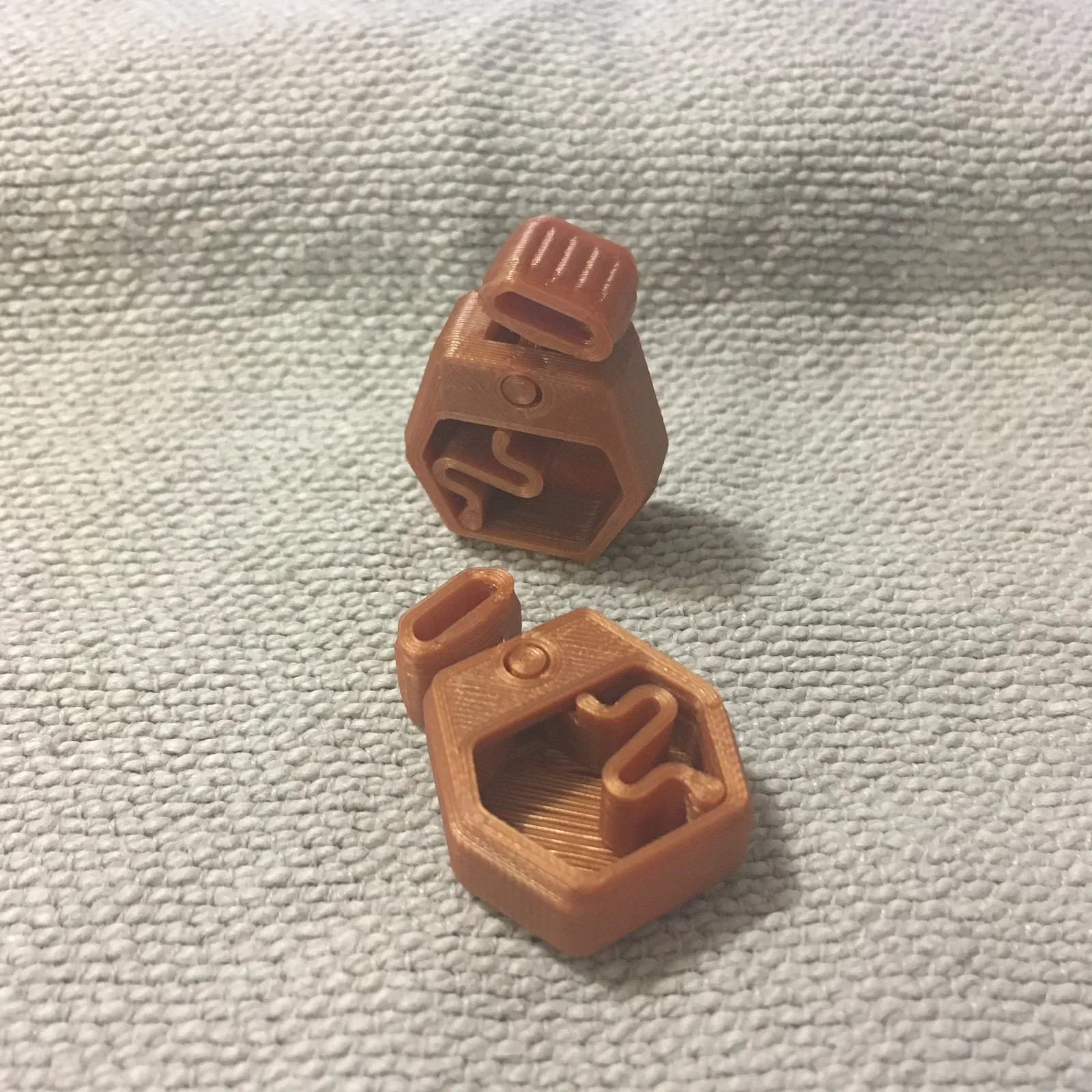 Cái đồ chơi này để cho mấy bạn tay chân không yên chơi nè, nó có hình dạng giống như cái công tắc nhỏ nhỏ, bấm lên bấm xuống có tiếng "click" đặc trưng. Cái này in ra là nguyên khối luôn, in cỡ nửa tiếng là xong với cài đặt thông thường thôi. Để in được ngon lành á, bạn phải chỉnh lớp in đầu tiên với lại cái lưu lượng nhựa in cho đúng nha, không thôi là mấy cái bộ phận nó dính lại với nhau luôn đó.
