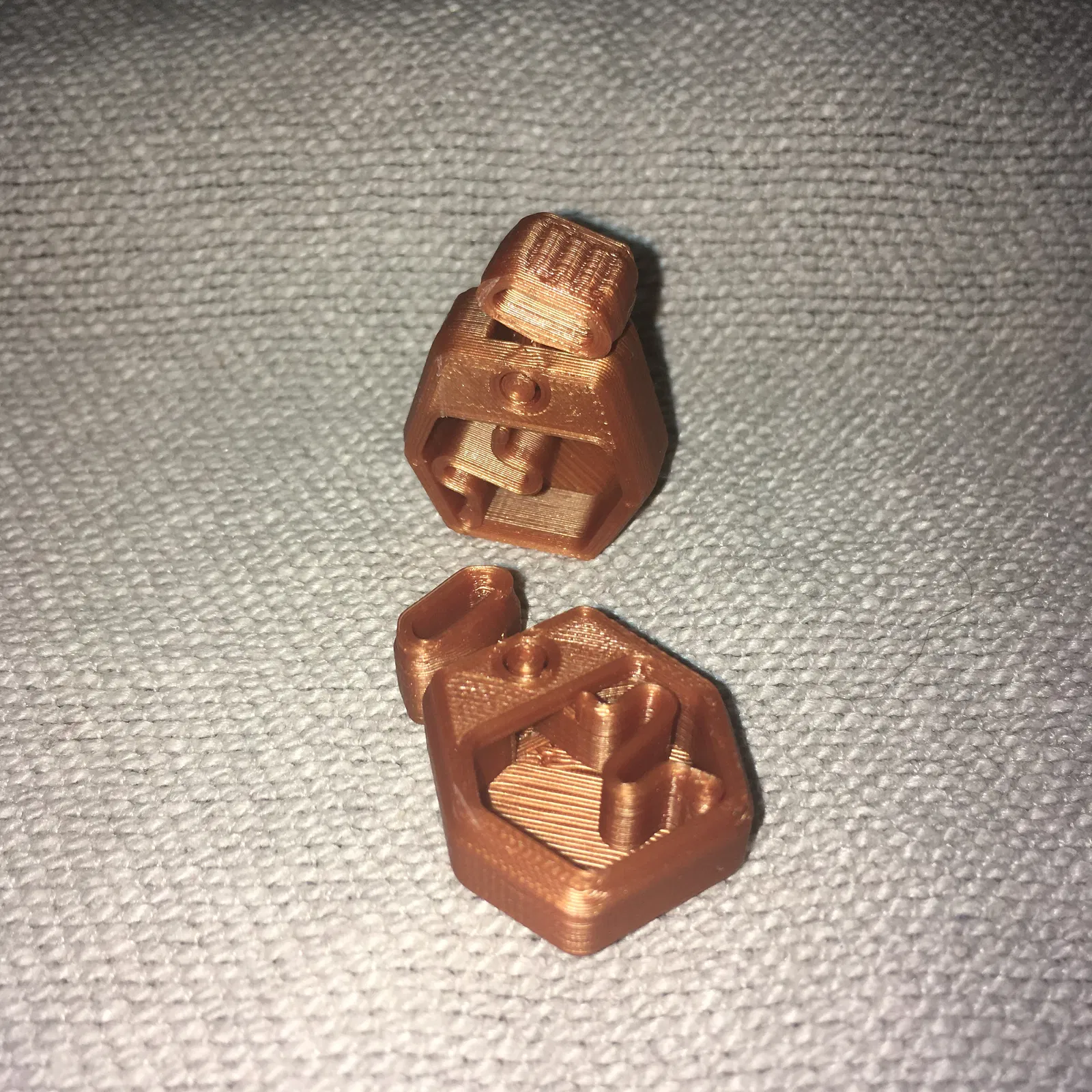 Đồ chơi clicker mini in nguyên khối cực nhanh, chỉ tốn khoảng nửa tiếng với cài đặt tiêu chuẩn. Lý tưởng cho người hay ngọ nguậy tay, tạo tiếng "click" vui tai. Lưu ý chỉnh lớp đầu và flow nhựa để tránh bị dính.