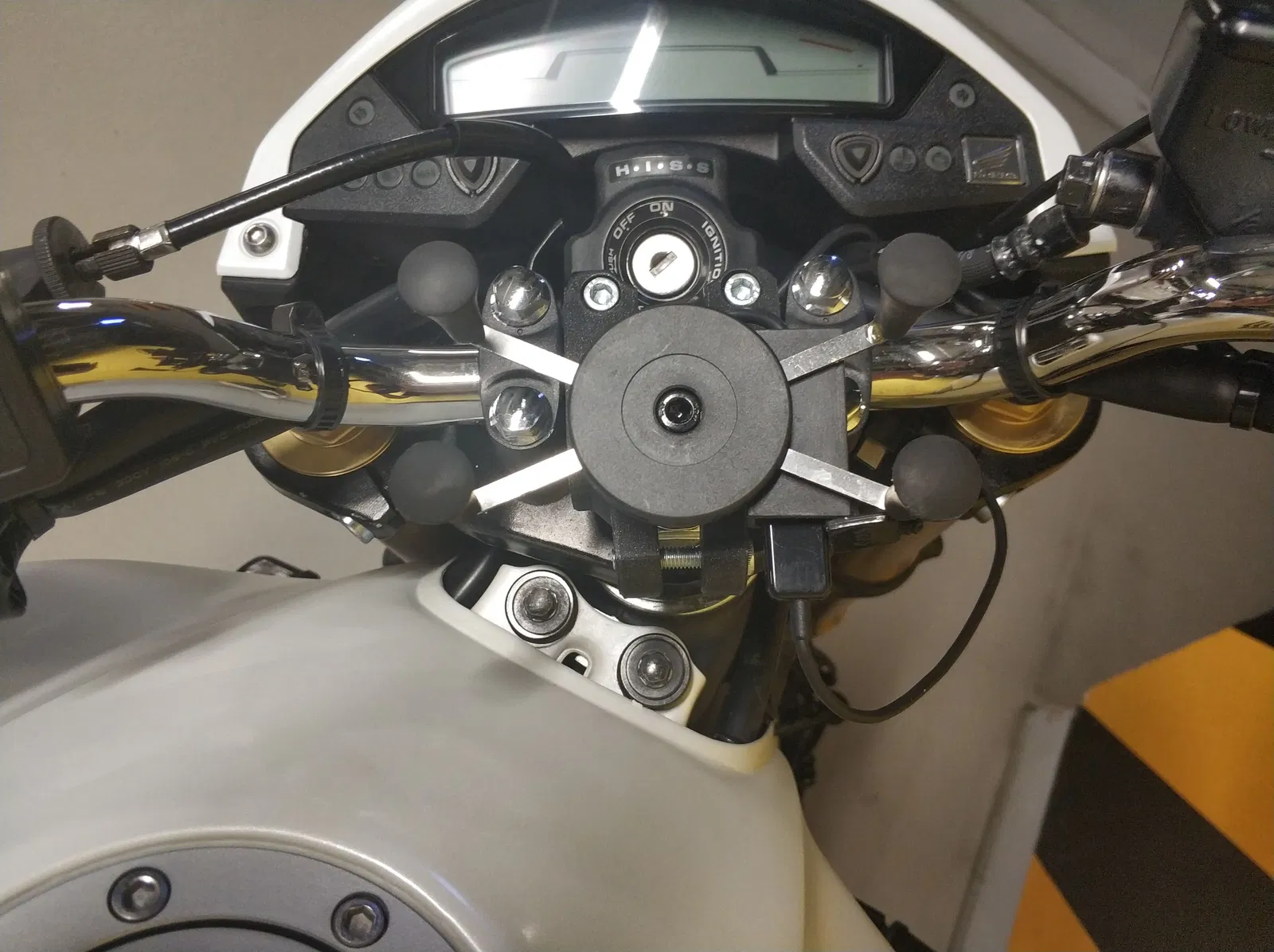 Mẫu giá đỡ X-grip này chỉ vừa khít cho Honda Hornet PC41, có lẽ không dùng cho xe nào khác. Bạn sẽ cần thêm ốc và dây thun để lắp. Lưu ý là phải tháo ốc ghi đông mới gắn được nhé!