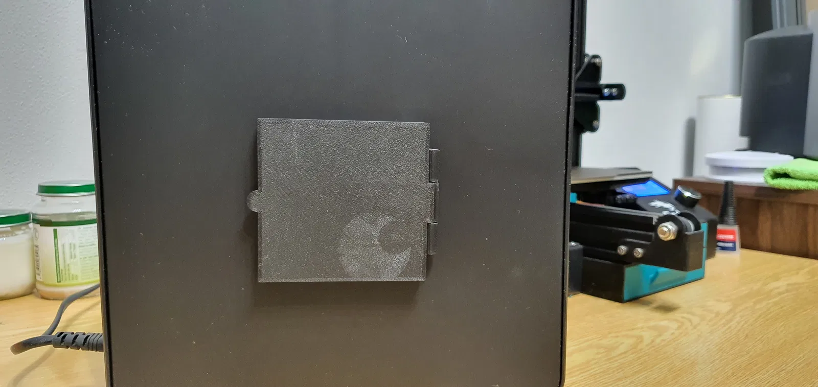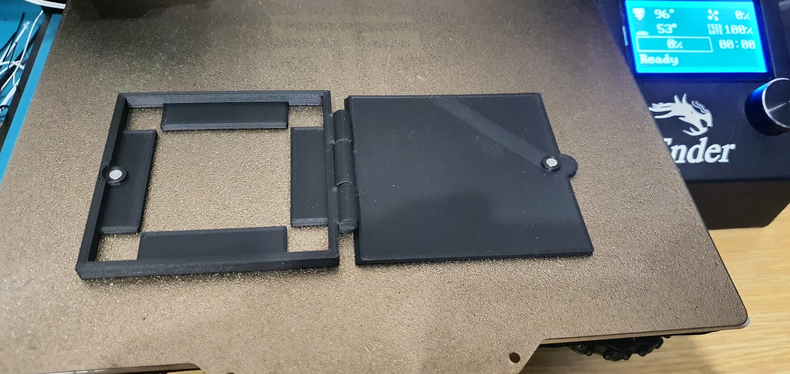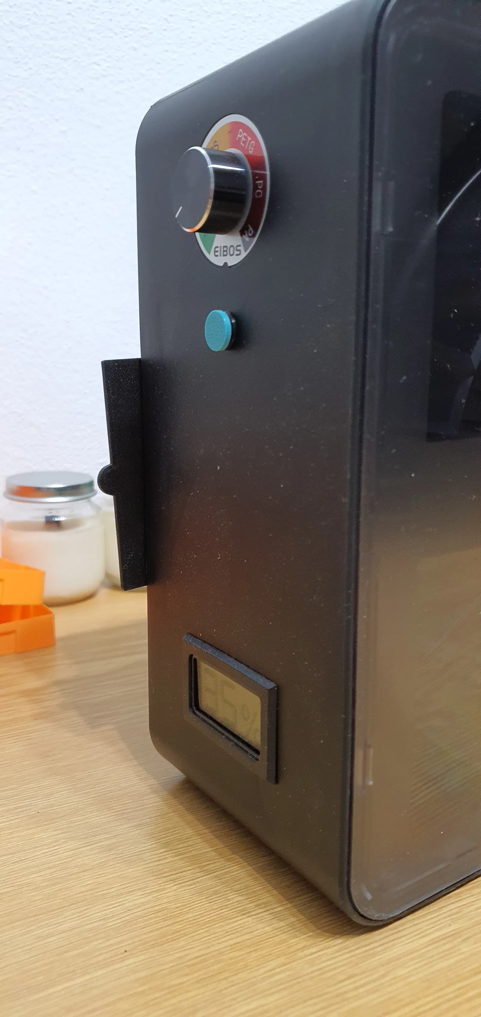 Tui mua Eibos Easdry không chỉ để hong khô filament mà còn làm hộp khô cho filament khi tui đang in. Nhưng khi tui không sử dụng chu trình hong khô thì không khí ẩm từ bên ngoài lại quay trở lại. Tui có sử dụng phích cắm máy hong khô filament ( ) và Thùng hút ẩm Eibos EasDry ( ) nhưng tui vẫn gặp vấn đề về độ ẩm tăng cao. Vì vậy, tui đã làm ra mấy cái cửa này, khi nào máy hong khô không chạy thì tui đóng lại :) Các bạn có thể thấy cửa mở ở phía trước khi chúng đang mở, như một dấu hiệu cho biết khi nào tui có thể bật máy hong khô. Trên cửa có 4 chỗ để dán băng keo hai mặt để cố định cửa vào máy hong khô. Các bạn nên dùng băng keo hai mặt loại mỏng nếu không sẽ có khoảng hở lớn. Tất cả các lỗ thông hơi của máy hong khô đều được che kín hoàn hảo khi bạn dán chúng đúng vị trí. Bạn có thể gắn 4 nam châm 2 mm vào cửa để cố định chúng, tránh bị tự mở. Đừng đóng cửa khi máy hong khô đang hoạt động!