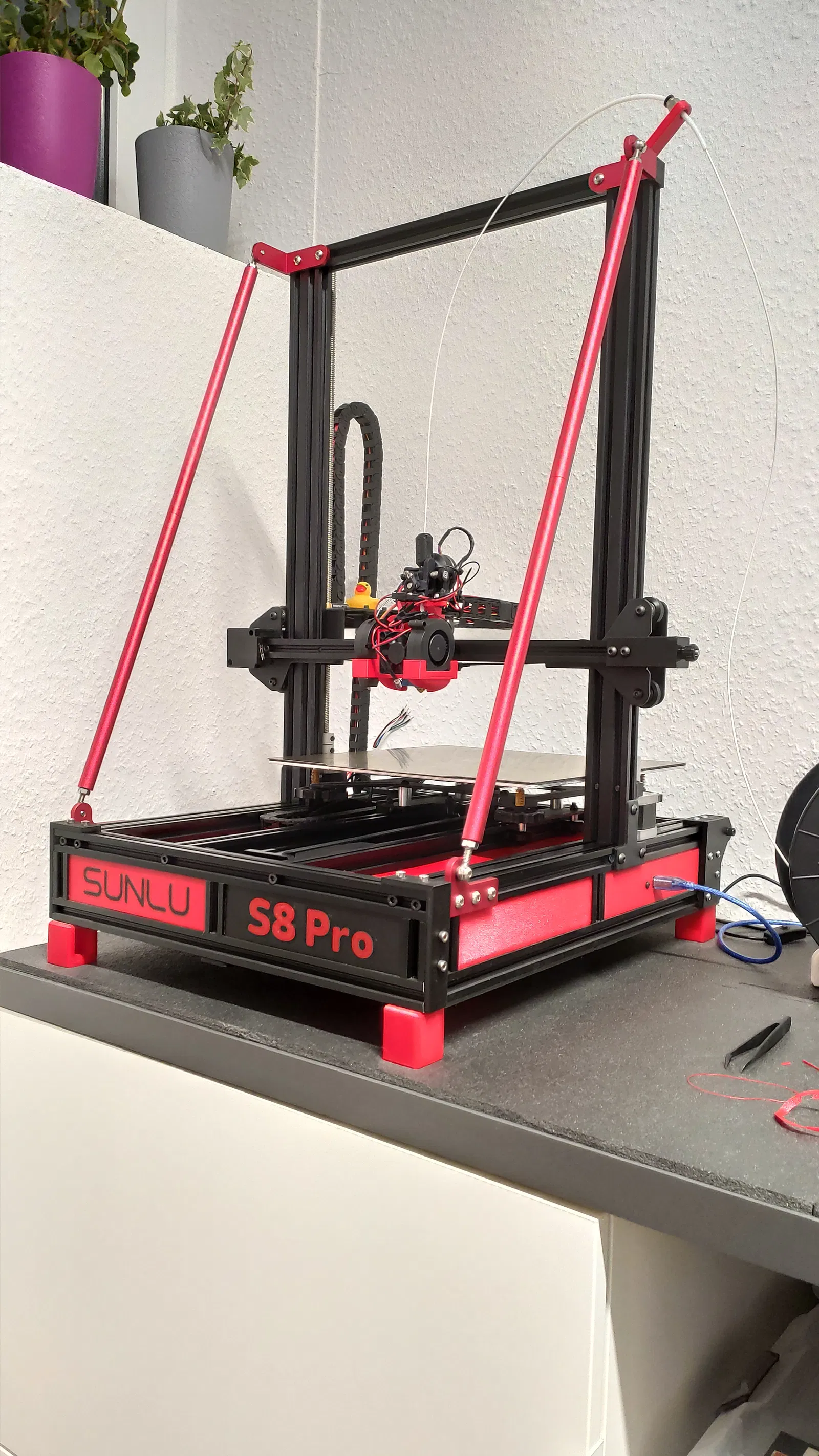 Mình phải làm lại nhiều bộ phận và chỉnh sửa những bộ phận có sẵn cho phù hợp với kích thước của S8 Pro, vì dự án gốc là dành cho CR10. Xin chân thành cảm ơn ý tưởng tuyệt vời của CR-10 Mod - Standalone - All in One của Cornely_Cool. Mình đã chỉnh sửa một số bộ phận bằng Tinkercad, còn những bộ phận khác thì "dễ" hơn là tự mình làm bằng FreeCad. Mình mới tập tành dùng FreeCad, nên vui lòng kiểm tra bản vẽ trước khi in.