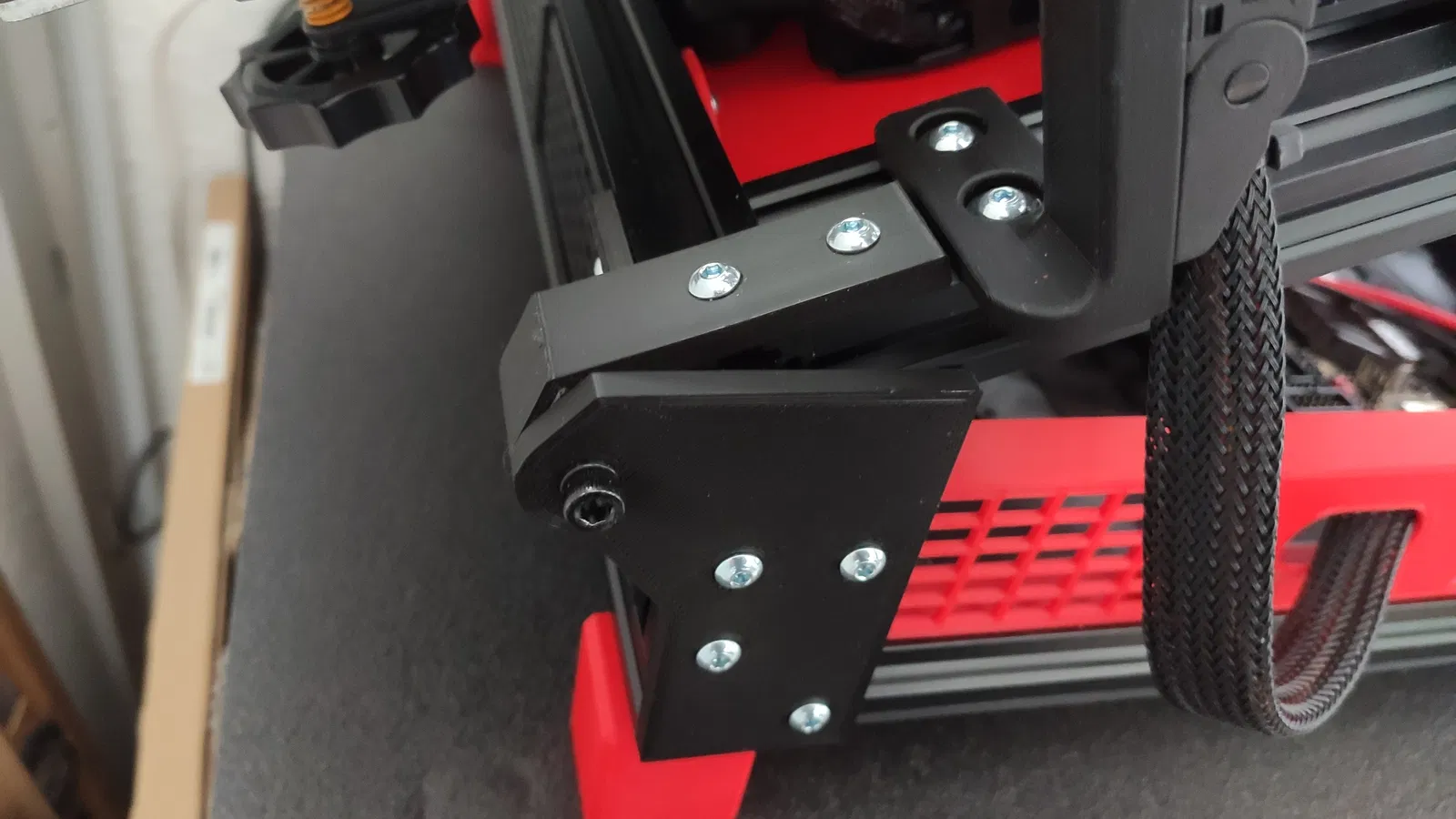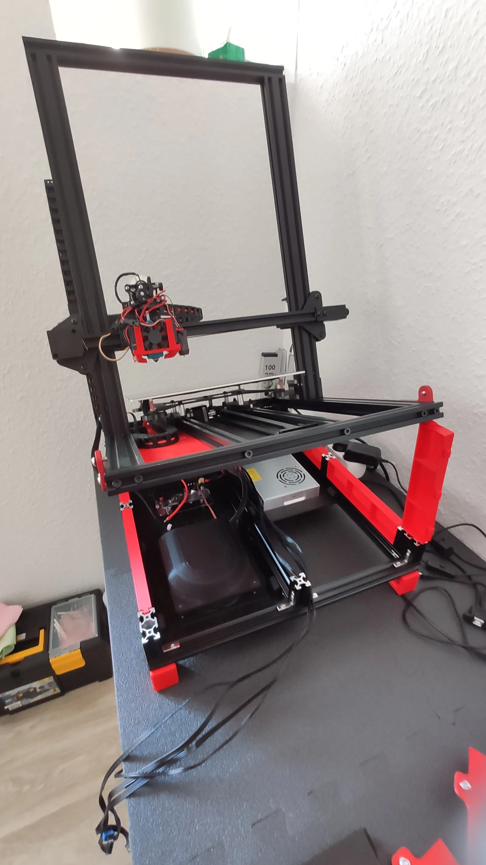 Lần đầu tiên mình chọn nhà cung cấp ở nước láng giềng Đức, không may là thanh V-Slot ở đó rộng 7.20mm. Mình cũng không thể cắt được những đoạn chỉ dài 40mm, tối thiểu là 80mm. Mình đã dùng Blender để chỉnh sửa các kẹp giữ tấm đế, nhưng đúng là mệt mỏi. Mình cũng phải tự in các thanh nhôm định hình dài 40mm, nhưng nó không được chắc chắn lắm. Mình cắn răng đặt hàng lần thứ hai, lần này là từ Ooznest. Bây giờ thì mọi thứ đều đúng, cắt và kích thước.
