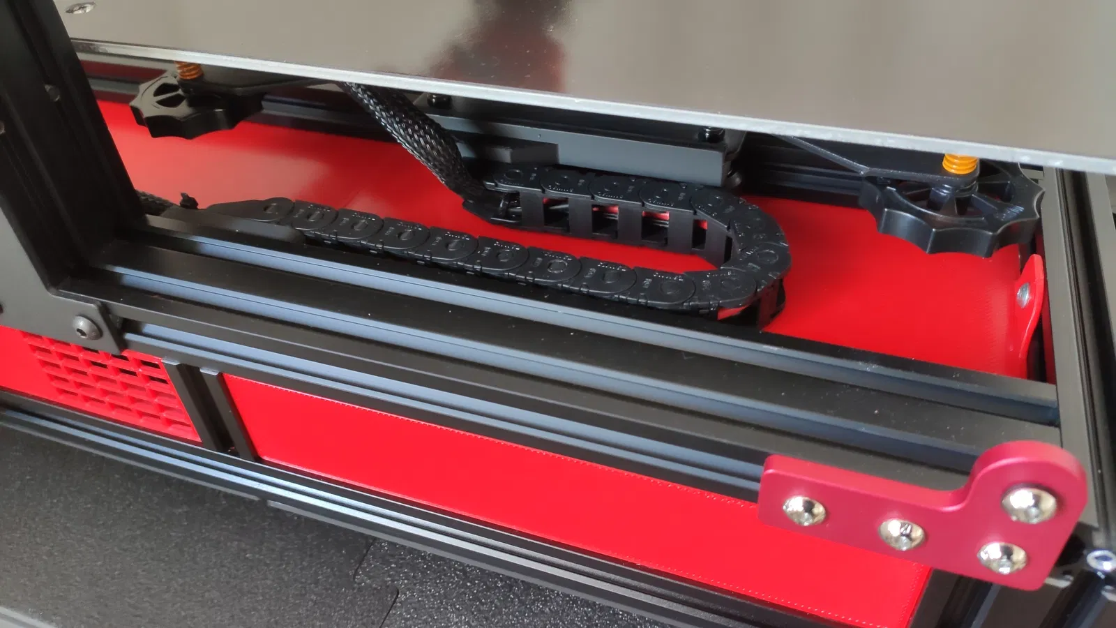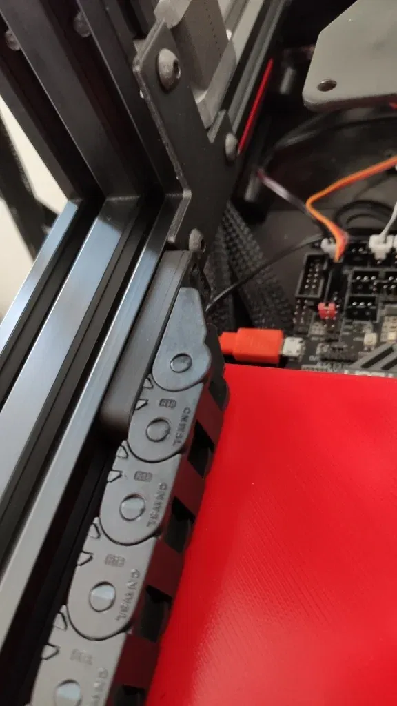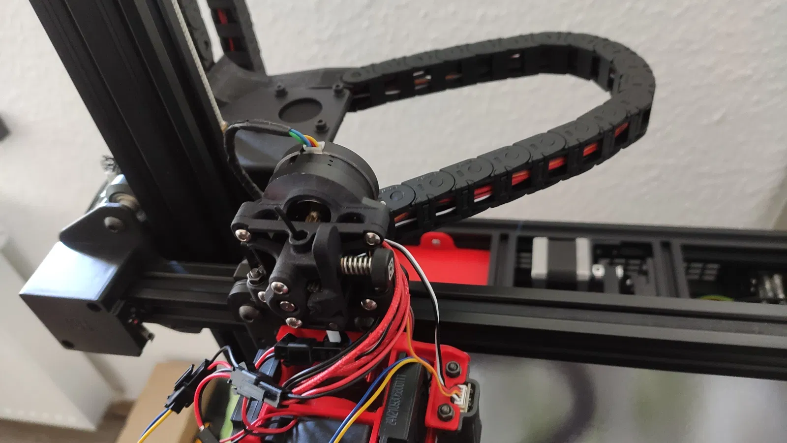 Vì mình thấy dây cáp trông gọn gàng hơn nên mình cũng muốn dùng chúng. Nhưng những cái mình tự in ra thì đều bị xệ xuống. Dự án Voron Switchwire thu hút mình vì bộ dẫn hướng dây cáp của nó. Nhưng mình cũng muốn giữ lại càng nhiều càng tốt các chi tiết nguyên bản, nên chỉ chỉnh sửa bộ phận giữ dây cáp. Dây cáp là loại 10x11mm R18 có đầu nối 3 lỗ.