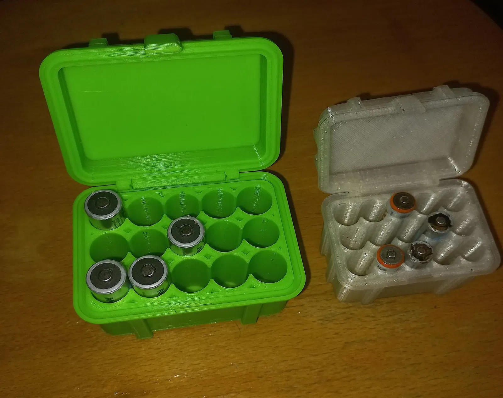 Chiếc hộp này được thiết kế để đựng vừa vặn 15 viên pin AA. Rất tiện lợi để bạn cất giữ và quản lý pin của mình. Nếu bạn cần loại cho pin AAA, cũng có mẫu tương tự nhé!