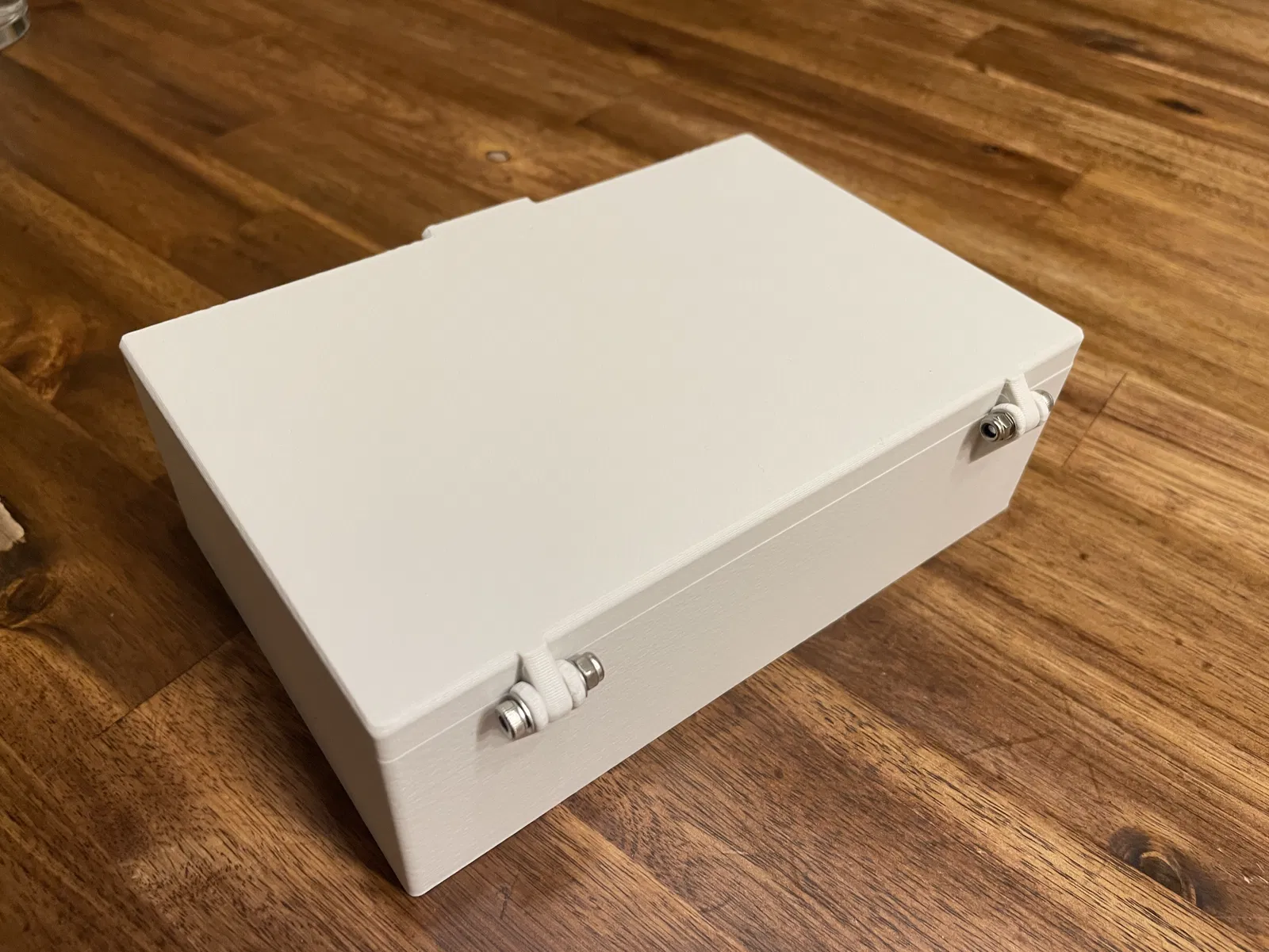 Một cái hộp nhỏ có nắp. Mình đã in thử bằng PLA và PETG rồi nha. Sử dụng 2 con ốc M3x14mm với 2 con đai ốc M3 cho phần khớp nối.