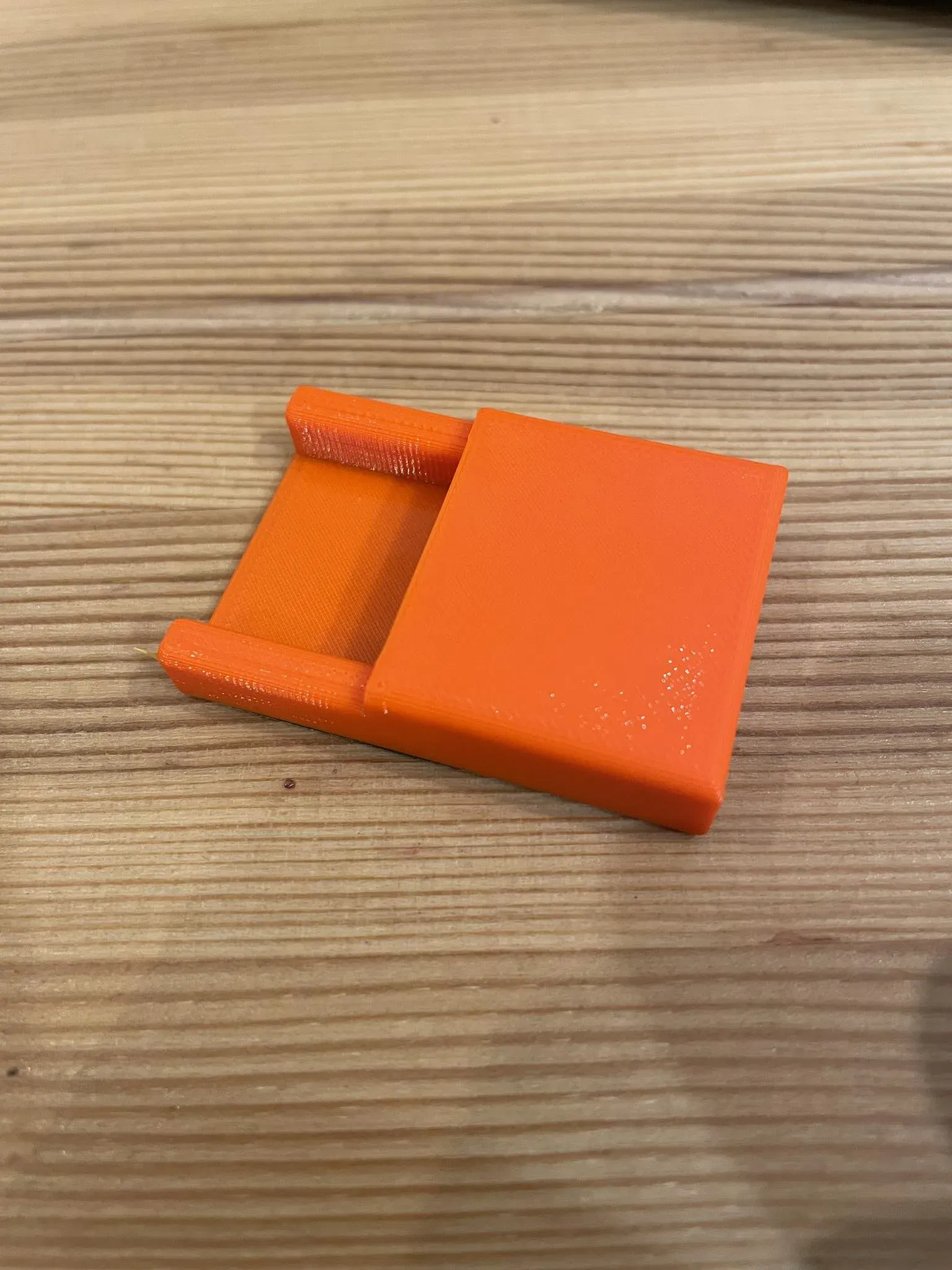 Để in ấn, chúng tôi không cần hỗ trợ, tôi khuyên nên in trên mặt phẳng lớn nhất. Tôi đã đính kèm kích thước của mình vào hộp theo cách này và nó thậm chí không rơi ra khi lật ngược.