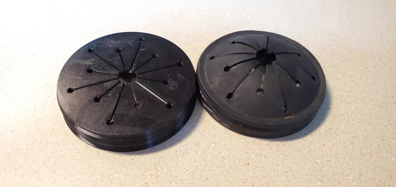 Chắn rác thay thế cho máy ép rác bồn rửa chén nhà bếp (TPU). Mua mới ở tiệm kim khí cũng được, nhưng tự in 3D thì xài từ 2020 tới giờ vẫn ngon. Tệp STL không cần support, có thể tùy chỉnh độ dày cánh cho phù hợp.