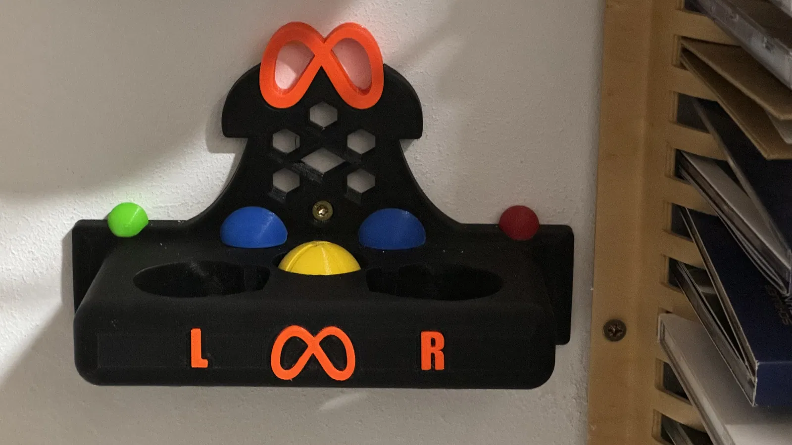 Phiên bản đơn giản hơn của giá treo tường cho tay cầm Meta Quest 3 của mình. Mình thiết kế phiên bản Redux này dựa trên tay cầm với ít chi tiết trang trí không cần thiết. Nó là một tay cầm chơi game mà, đúng không? - Vậy thì nó cũng nên trông giống như vậy. Mình có làm một phiên bản khác, . Mọi thứ được in bằng PETG đơn sắc. Các bộ phận có màu được in riêng và chỉ cần gắn vào là xong. Chỉ có logo và chữ ở mặt trước có thể cần chà nhám một chút. Nếu chúng không đủ chặt, một giọt keo nhỏ là được.
