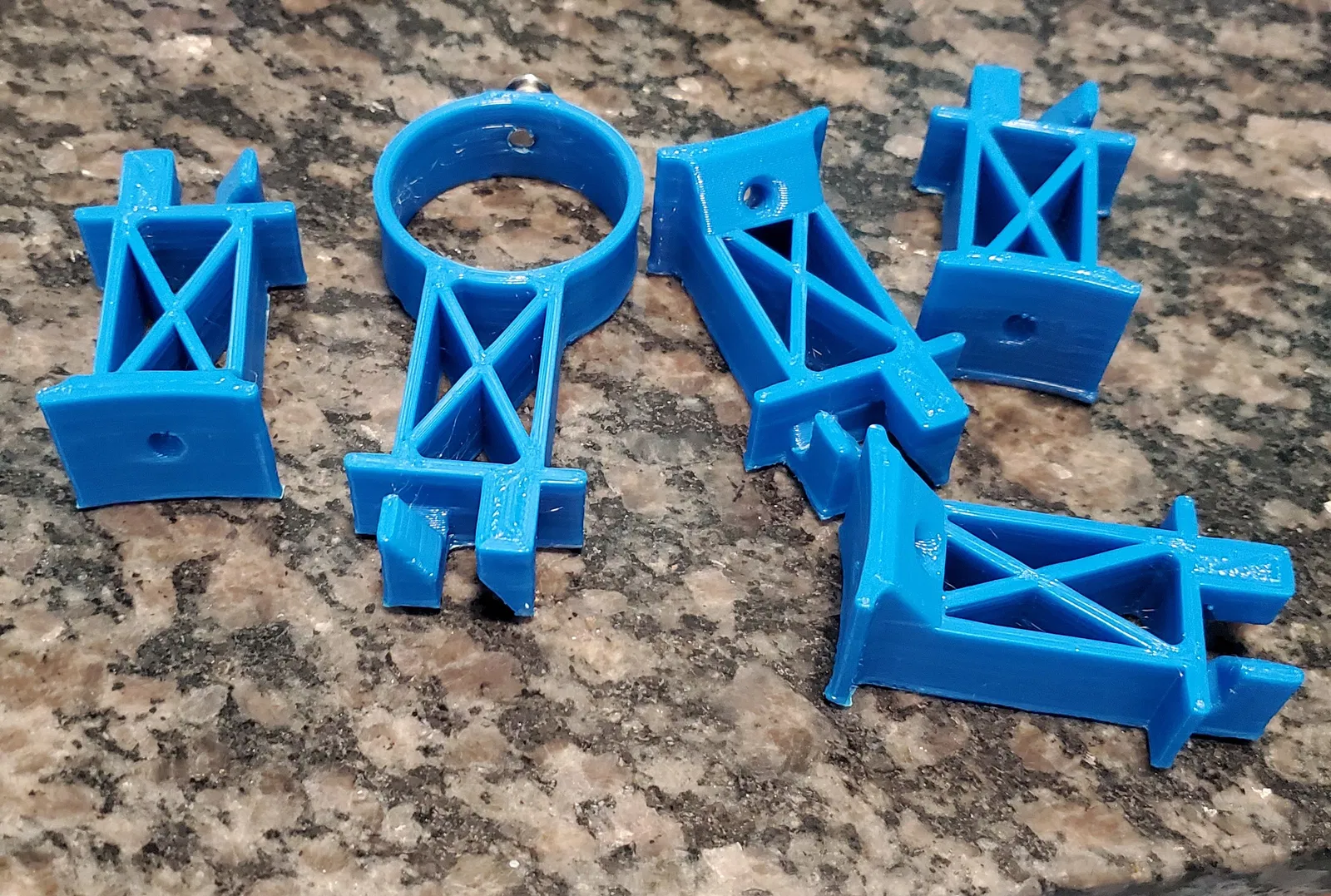Tôi đã in tất cả những cục này bằng dây cước cắt cỏ nylon. Chất liệu này tạo ra các bộ phận cực kỳ chắc chắn và bền bỉ. Tôi đã mua dây cước cắt cỏ tròn .065" màu xanh từ MaxPower trên Amazon. Tôi đã in rất nhiều với loại dây này và nó tạo ra các bộ phận rất bền, mặc dù nó dễ bị cong vênh như hầu hết các loại nylon, nên việc in các bộ phận lớn sẽ khó khăn. Và tôi đảm bảo khử nước cho nylon trước và trong khi in.