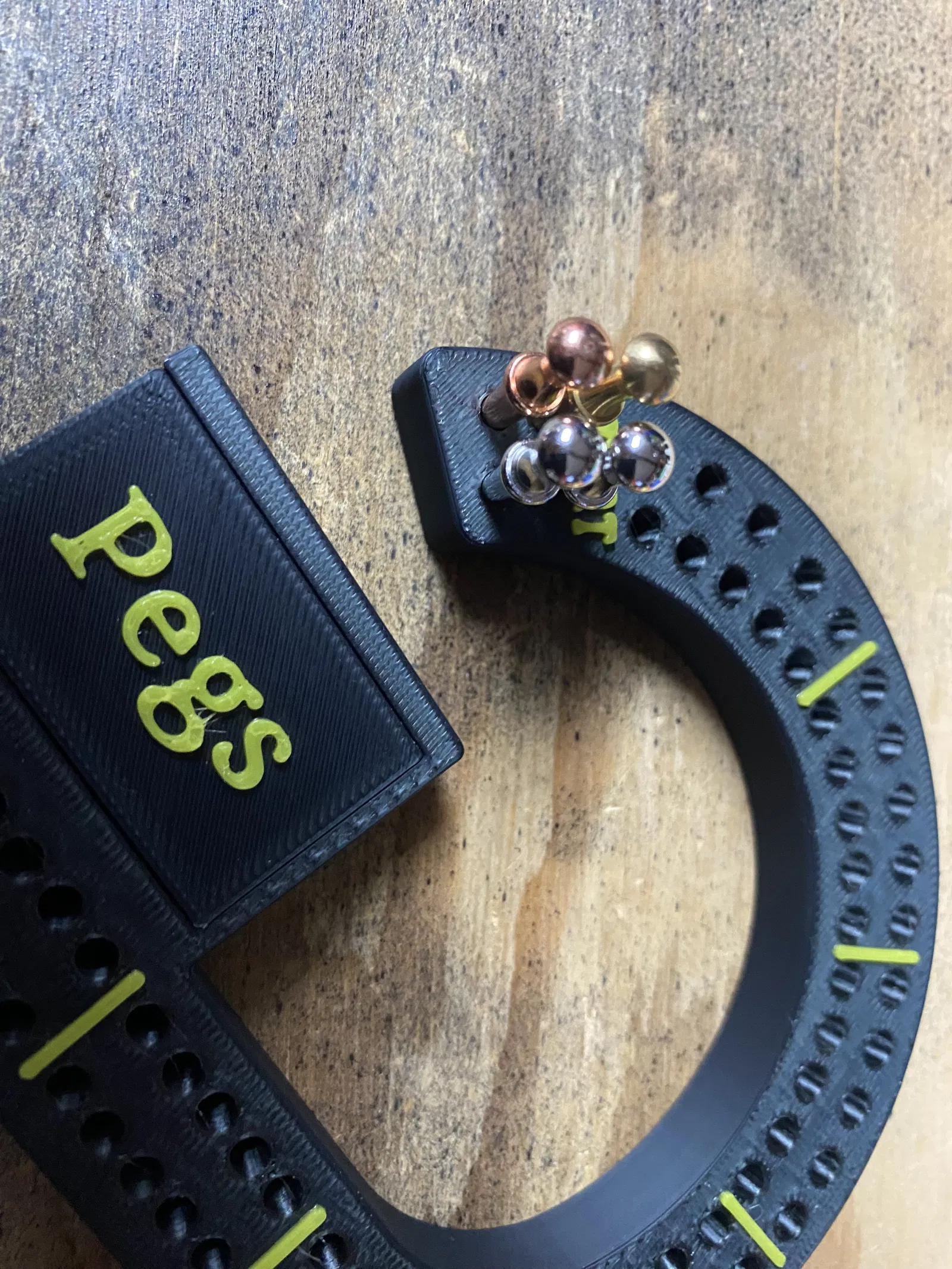 Lỗ thì xài vừa chốt cribbage tiêu chuẩn, chốt bằng kim loại là ngon nhất, tui có thử chốt nhựa với tự làm mà thấy không bõ công, khó làm cho đúng mà lỗ nó nhỏ xíu nên dễ gãy lắm.