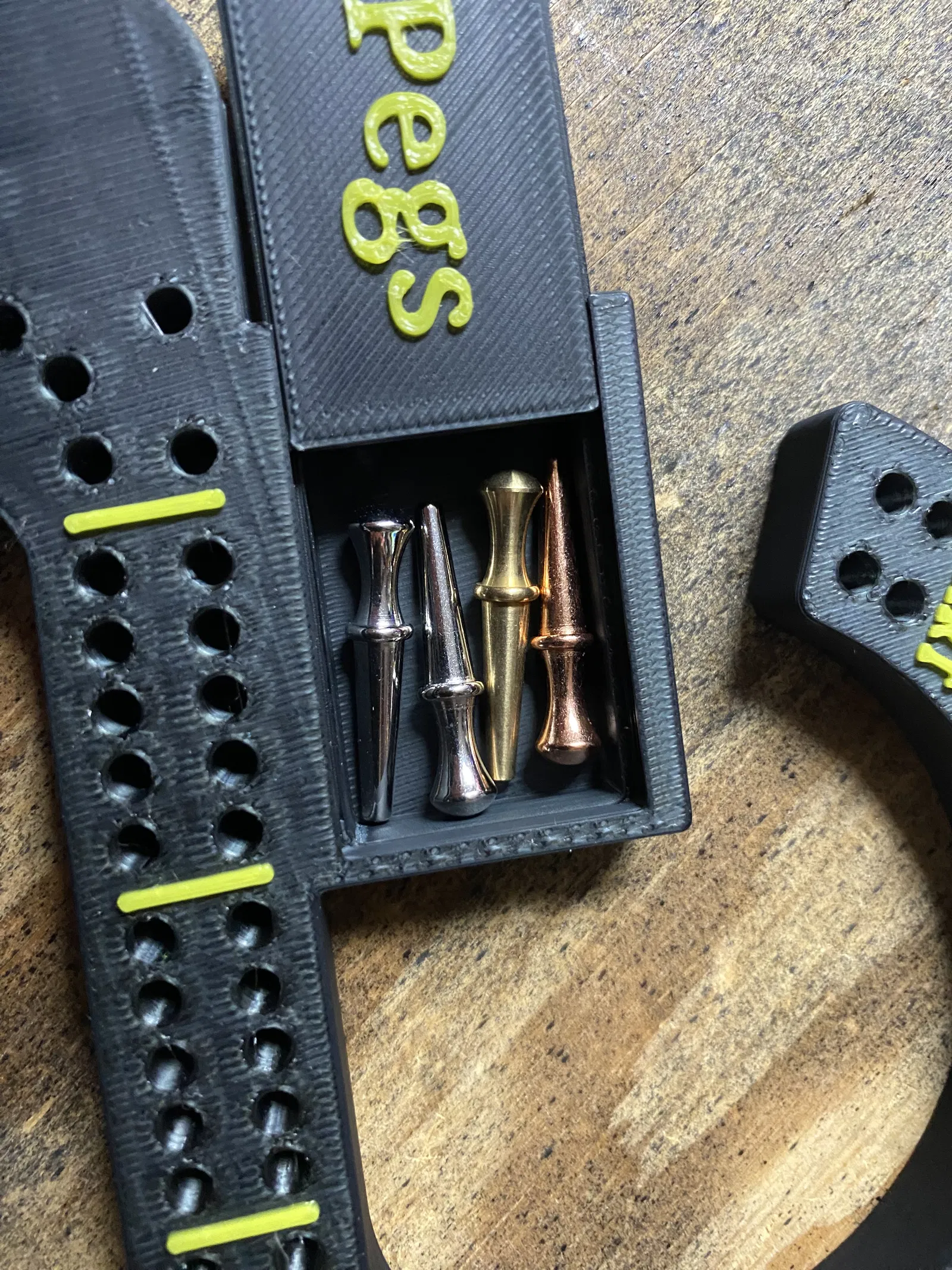 Tui thấy có cái giống vầy đâu đó, ý tưởng hay lắm, cái này có lỗ đúng kích cỡ để xài chốt tiêu chuẩn luôn, tại nhiều người thích xài chốt riêng của họ khi chơi đó, tui cũng có gắn thêm cái hộp có nắp, vừa khít để không bị rớt ra và đựng được 4 chốt nha.
