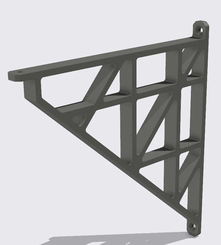 Giá đỡ kệ được làm với đầu chắc hơn và lỗ gắn lớn hơn, phù hợp cho các ứng dụng kệ, nội thất, công nghiệp. File STL sẵn sàng để in 3D bằng PLA.