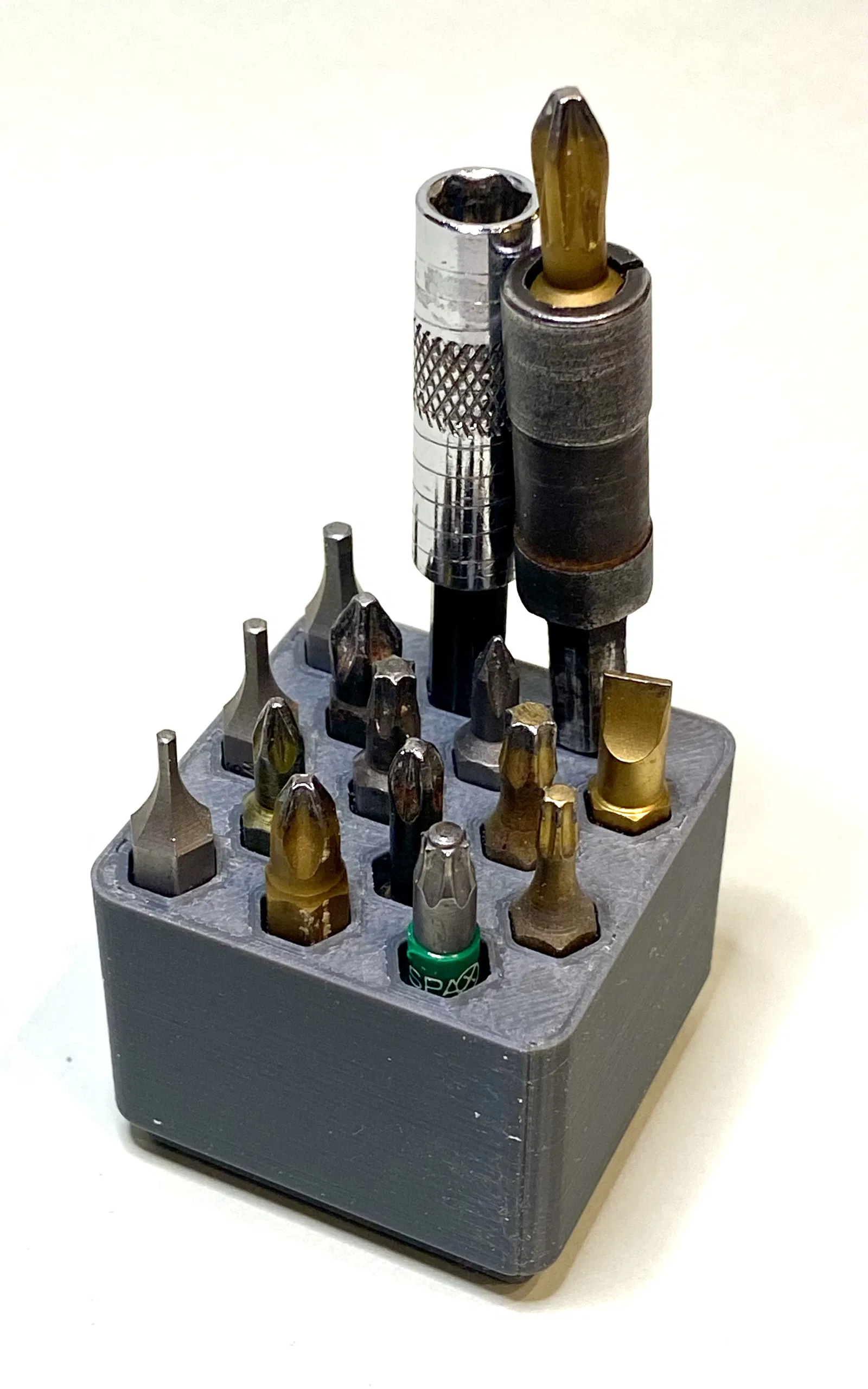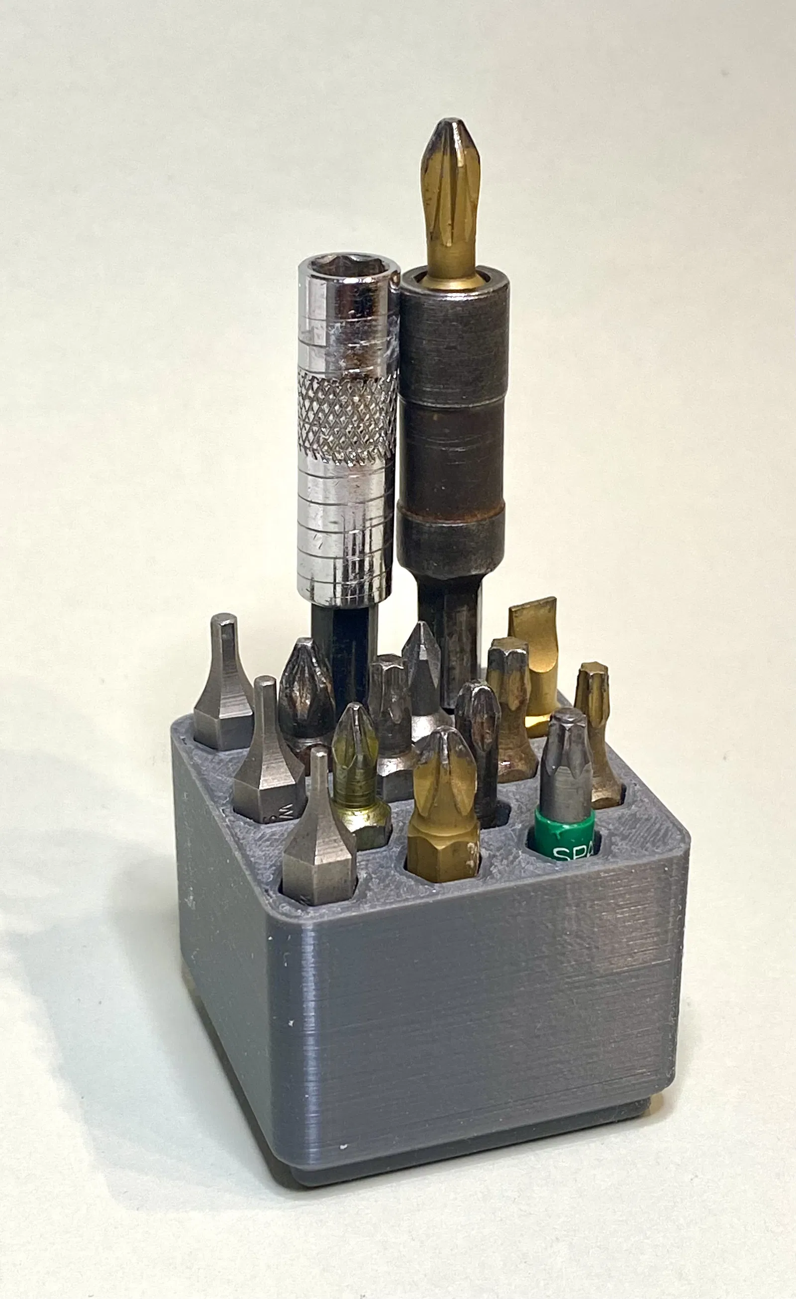 Tui cần sắp xếp lại cái hộp mũi khoan của tui, nên là tui áp dụng cái hệ thống gridfinity luôn. Lấy kích thước của mũi khoan, thêm 0.5mm cho mấy cái lỗ. Làm dzậy là ổn áp nè. Tui xài cái hộp gridfinity 1x1. Tui làm cái đế đặc luôn, chứ tui hem có thích mấy cái lỗ kia đâu. Tui làm cho cái hộp gridfinity nó đầy đặc luôn. Rồi khoét lỗ cho mấy cái mũi khoan. Thiết kế bằng TinkerCad. Xem thêm các mẫu in khác của tui: https://www.printables.com/de/@Tritschi