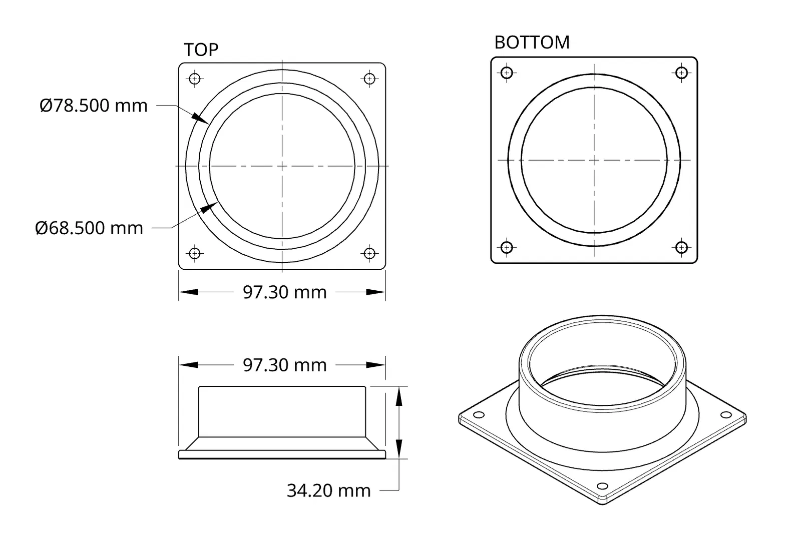 Một cái măng sông dùng để gắn vào quạt/ống dẫn, phụ kiện đi kèm với vỏ máy Elegoo Phecda. Phù hợp cho anh em xài máy khắc laser Elegoo Phecda.