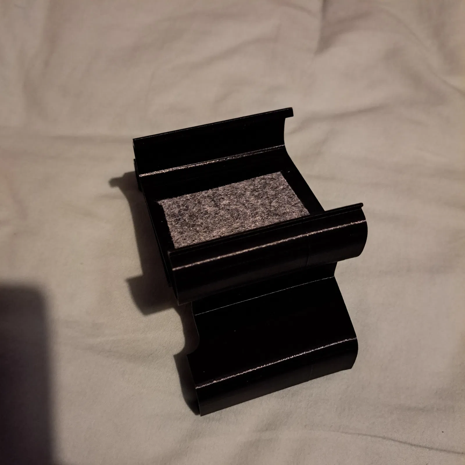 Sau khi in cái này xong, mình thấy cục pin hơi bị lỏng, nó vẫn vừa vặn nhưng mà trượt qua lại trong cái kẹp dễ dàng. Nên mình đã dán một miếng nỉ vô mặt sau, và cái đó làm tăng thêm ma sát.