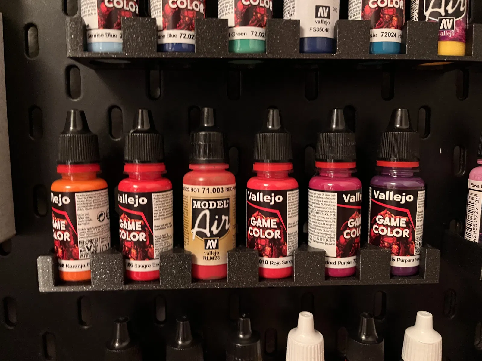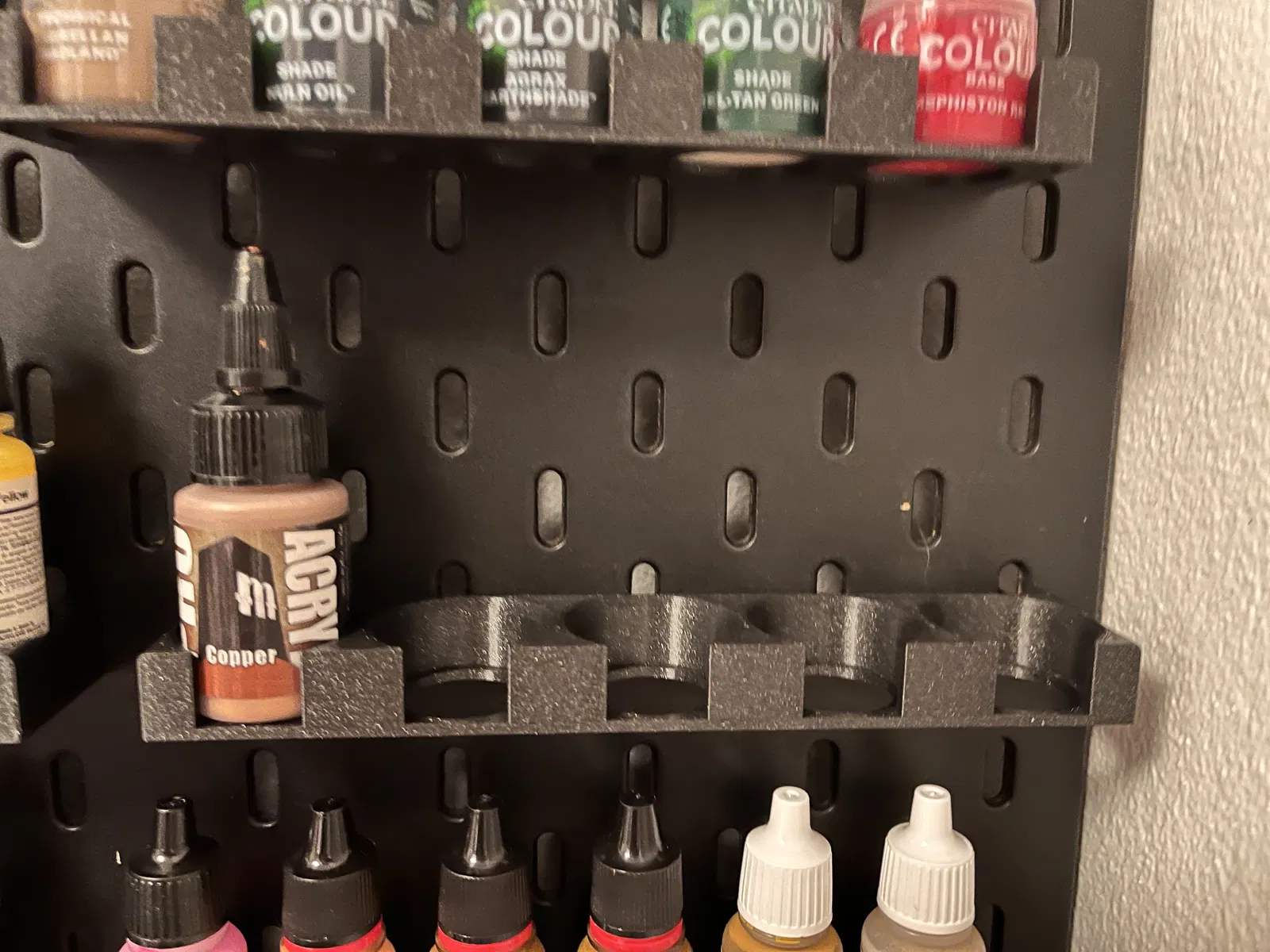 Giá đỡ sơn mini cho hệ thống Skadis / Skådis, có ba phiên bản phù hợp cho sơn Vallejo (hoặc các loại có kích thước tương tự), Citadel hoặc Pro Acryl.