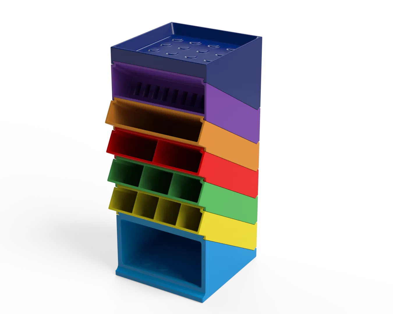 Bộ sắp xếp bàn làm việc dạng module này bao gồm các ngăn có thể xếp chồng lên nhau và trượt vào nhau một cách đơn giản.