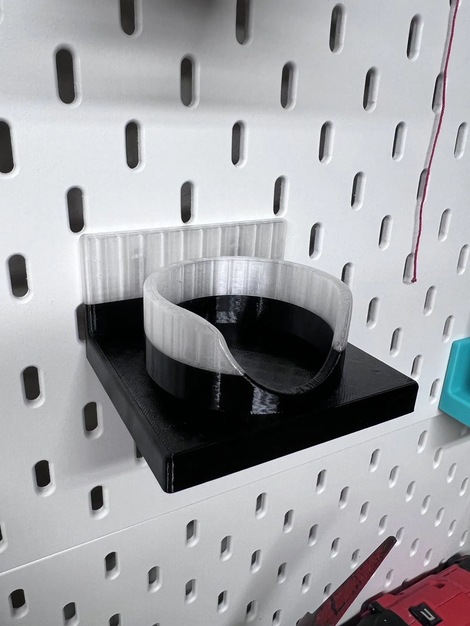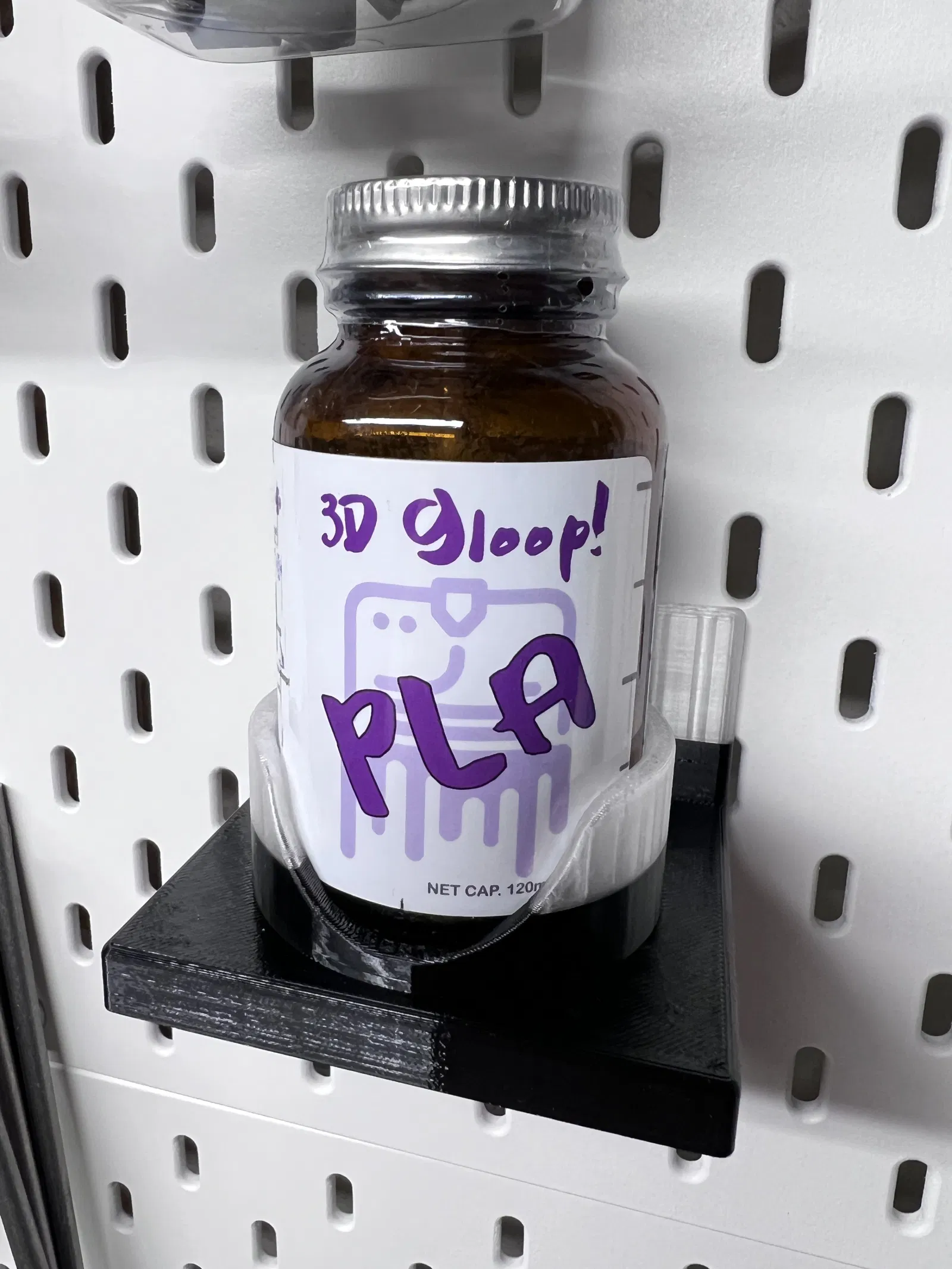 Kệ đựng keo Gloop! cho bảng Ikea Skadis, có thể đựng bất kỳ chai hoặc vật tròn nào có đường kính 54mm.
