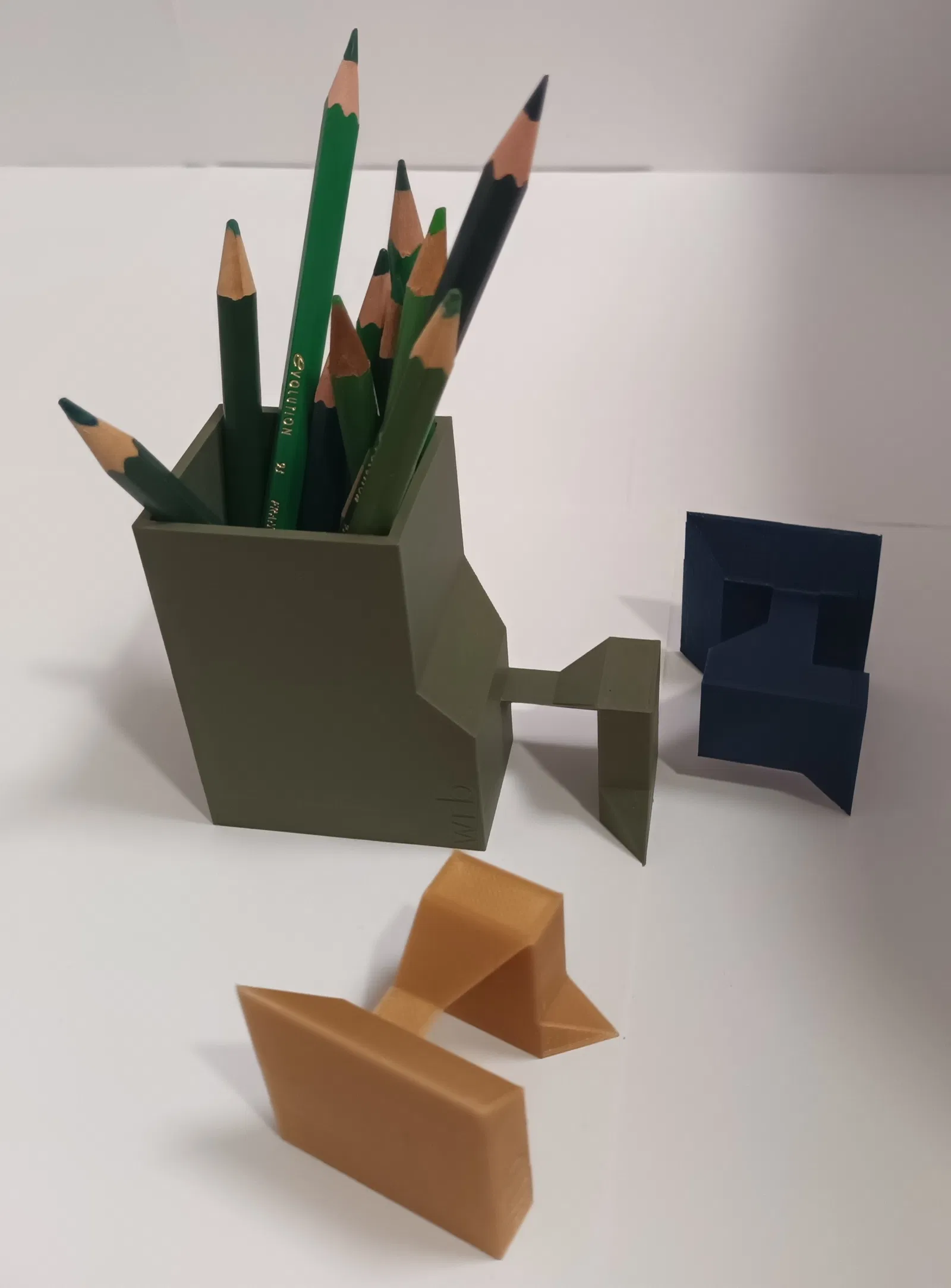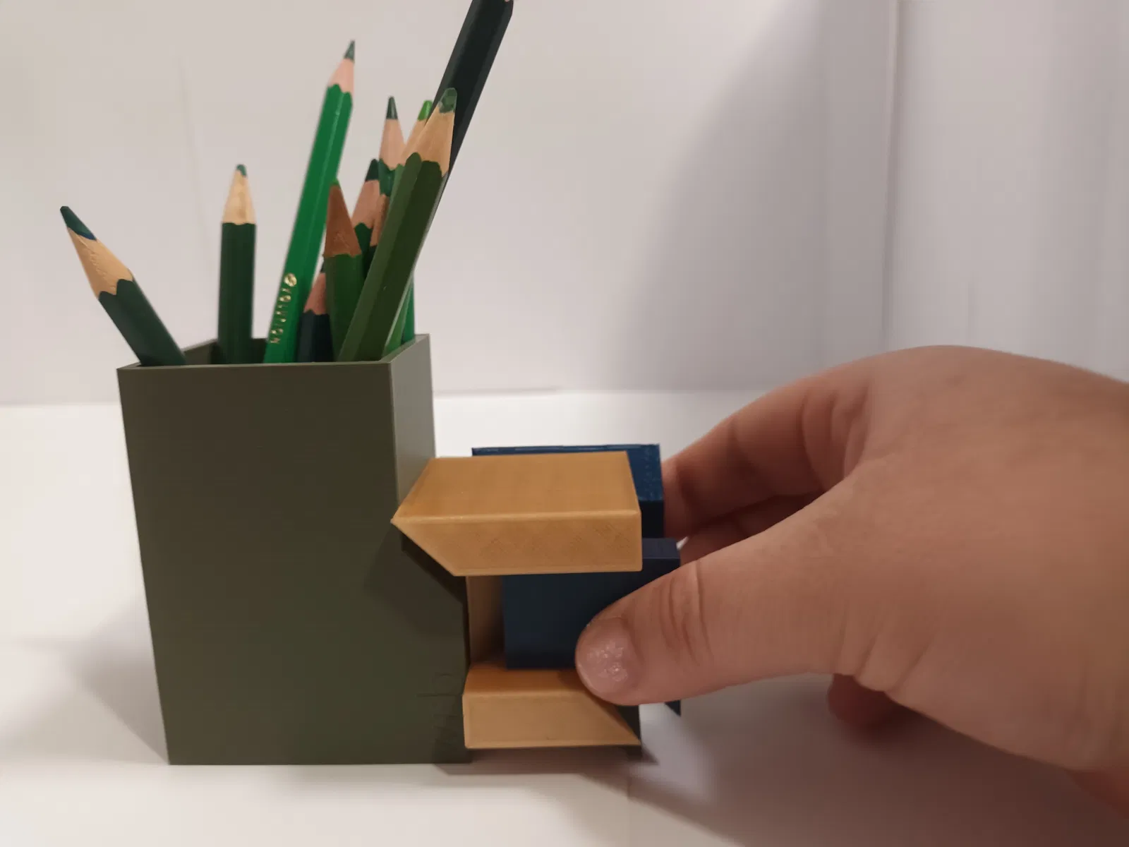 Khối xếp hình được thiết kế lại thành hộp đựng bút/bút sáp màu. Mô hình này có 3 bộ phận có thể lắp ráp với nhau. Có hai tùy chọn kích thước cho hộp đựng: một nhỏ và một lớn.