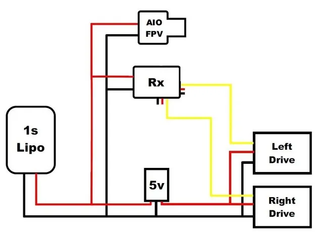 Chiếc xe tăng FPV nhỏ này sử dụng bánh xe Lego được điều khiển bởi các servo. Để xây dựng, bạn cần những thứ sau: - Hai bánh xe Lego (Bộ phận Lego: x939 hoặc 43903 - www.bricklink.com để có giá tốt nhất)