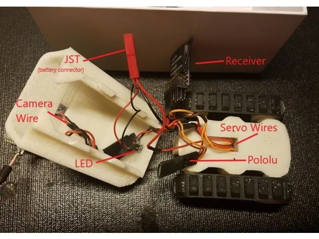 • Giá đỡ camera FPV Khung được in với các giá đỡ tích hợp. Xem hình ảnh để gỡ bỏ các giá đỡ trước khi lắp ráp cuối cùng. Cắt bỏ tay servo để vừa vào bánh xe dẫn động và gắn bằng vít cung cấp. Các bánh xe không dẫn động có thể được gắn bằng bu lông M3 và khoảng cách. Nếu in các nửa bánh xe, chỉ cần dán keo siêu dính lại với nhau. Khung và Khung gầm ghép lại với nhau. Dán keo siêu dính pod FPV vào đỉnh của khung. CẬP NHẬT: Tôi đã đặt hàng đèn LED trắng sáng và nó quá sáng. Tệp đã được cập nhật chỉ với một đèn LED trung tâm. nếu đèn của bạn không sáng, thì hãy sử dụng hai cái. CẬP NHẬT: Tôi rõ ràng đã quên tải lên khung ba bánh xe. điều đó đã được khắc phục. Video tại https://youtu.be/3xX55TlleuA https://www.youtube.com/watch?v=c7dHLBPiJa4 Xem các Tiny Traks khác của tôi ở đây: https://www.f3d.vn/3d-model/13866-xe-tang-fpv-mini-voi-thap-phao-dieu-khien-servo https://www.thingiverse.com/thing:3464889 Đây là thiết kế gốc của tôi. Nó không được tải lên lại từ một trang web khác; tuy nhiên, nó đã được đăng lần đầu tiên trên Thingiverse