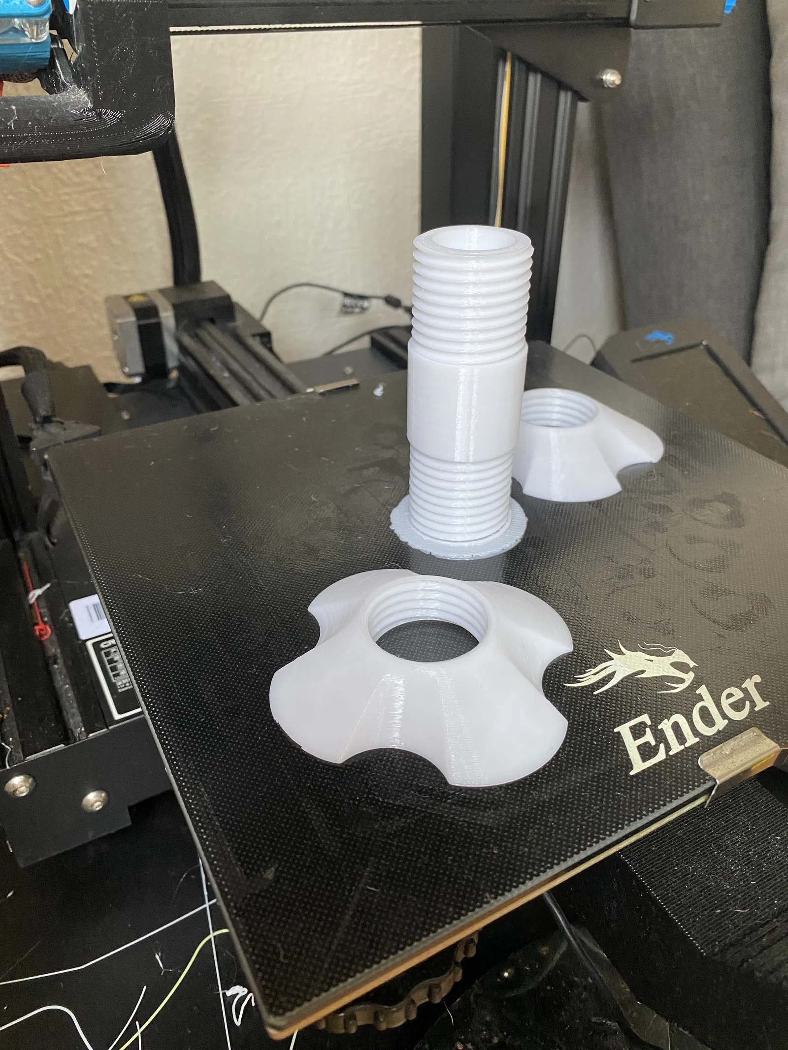 Mình được truyền cảm hứng từ thiết kế “Central filament spool axis…” của Artur Sass Braga, và mình thấy cái đai ốc của nó hơi nhỏ cho các cuộn chỉ có đường kính trong lớn hơn 63mm, nên mình đã thiết kế lại hoàn toàn và tạo ra hai phiên bản đai ốc: * Đai ốc nhỏ hơn: có thể xử lý mọi cuộn chỉ có đường kính trong từ 35 đến 65 mm.