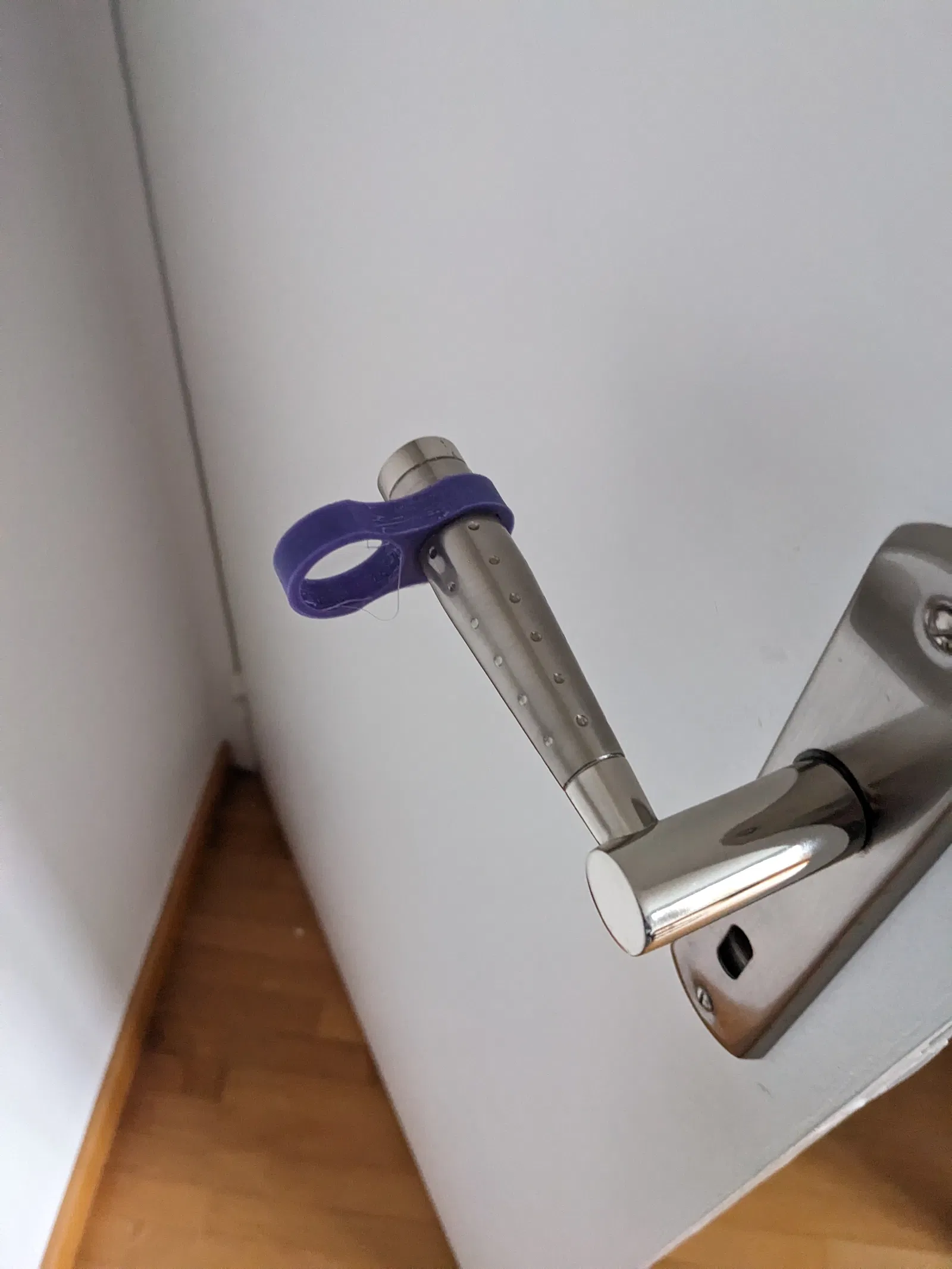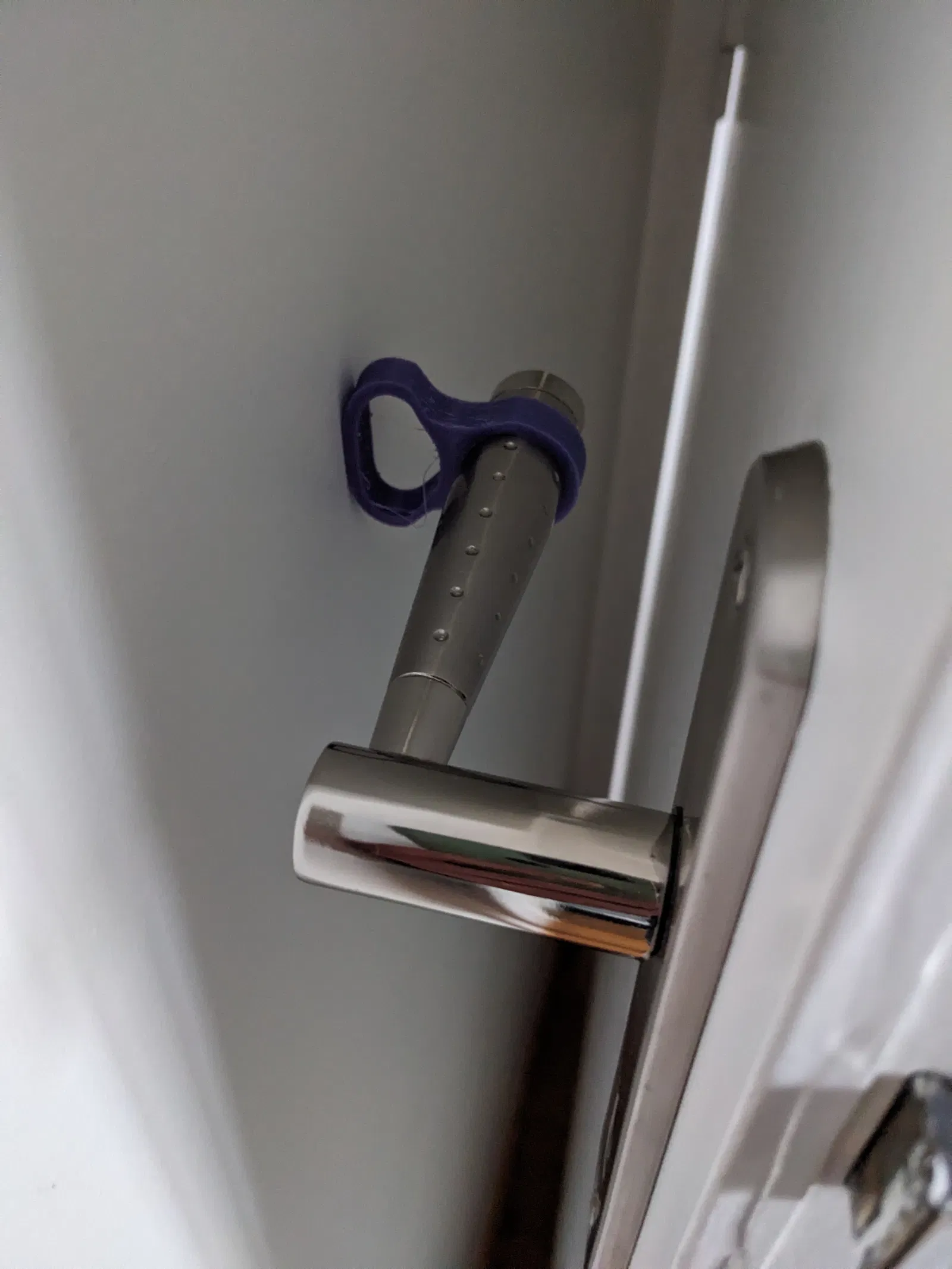 Cái này là cái chặn, giúp tay nắm cửa không bị đụng vô tường làm trầy xước tường hoặc móp tay nắm. Bạn nên in bằng TPU và có thể tùy chỉnh kích thước cho phù hợp với tay nắm cửa nhà bạn bằng file openSCAD đính kèm.
