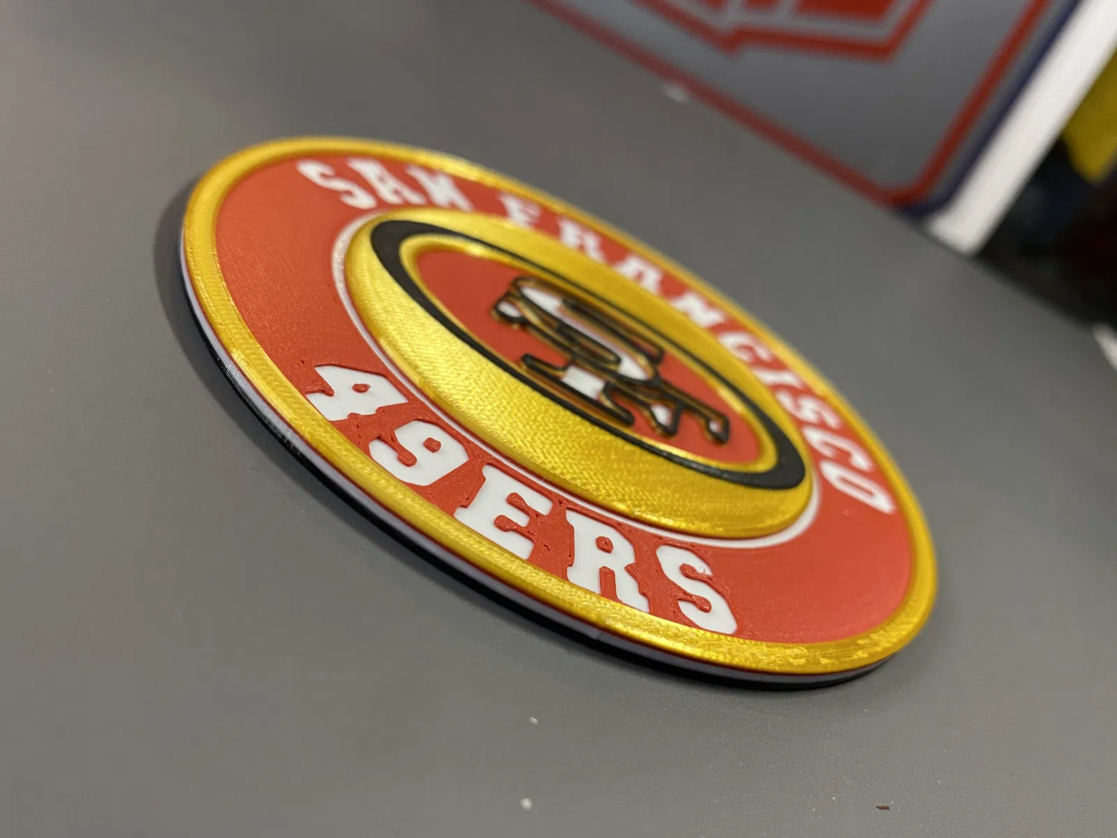 In tem đế lót ly San Francisco 49ers, món quà tuyệt vời cho fan hâm mộ đội bóng bầu dục NFL này. In bằng PLA, file STL sẵn sàng để bạn in 3D. Hoàn hảo cho đồ uống của bạn.