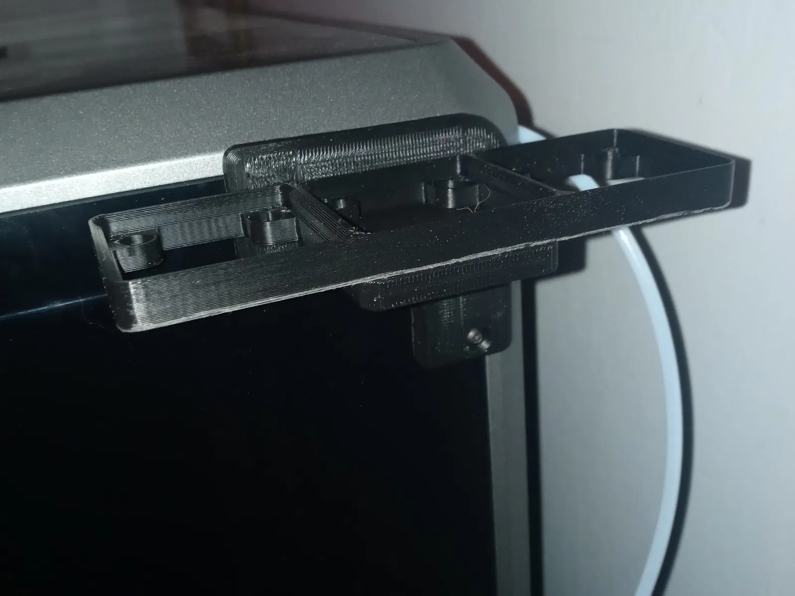 ps. xin lưu ý rằng tôi đã điều chỉnh tệp sau khi in cái của tôi, tôi đã hạ thấp điểm lắp để có thể truy cập vào cả hai ốc vít sau khi giá đỡ được lắp ráp, không giống như cái của tôi, bạn sẽ nhận thấy cái trên cùng bị chặn bởi khung gridfinity.