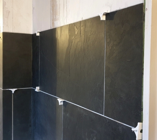 Mấy cái này giúp ích lắm cho việc ốp mấy cái gạch SlateLite mỏng, vì mấy cái ke chừa lại kiểu thường nó dày quá.