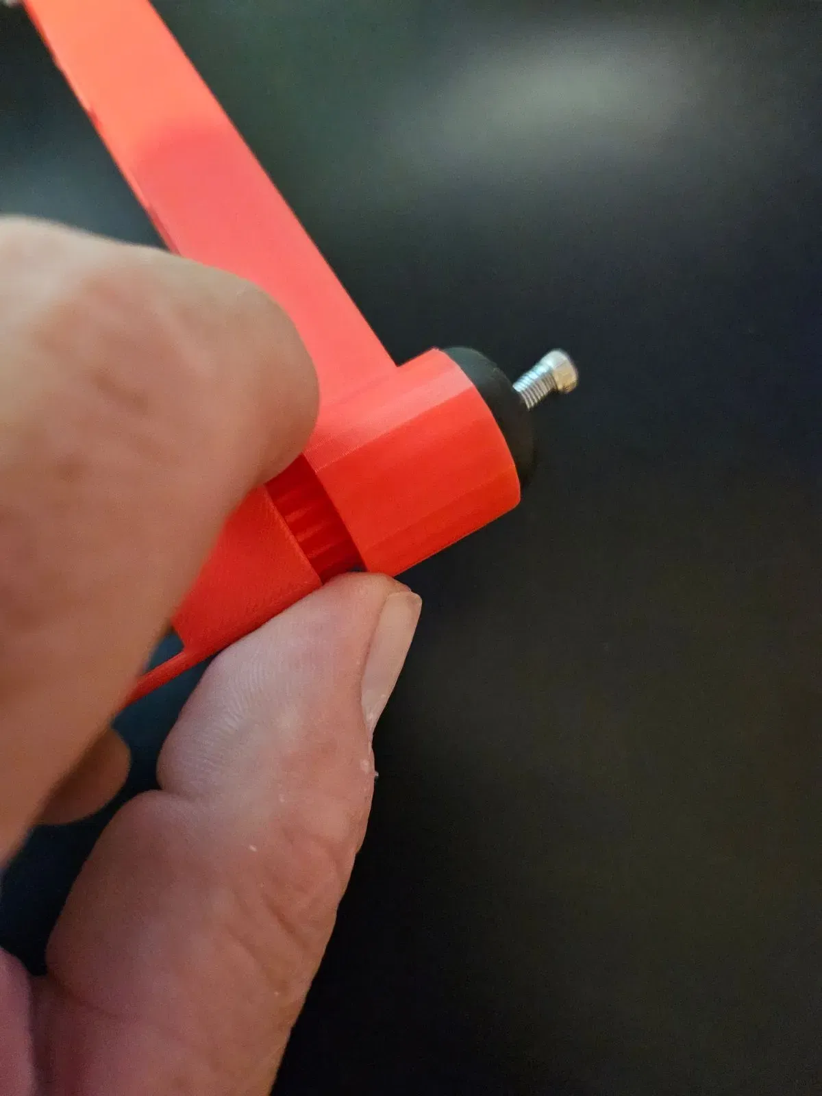 Cũng đã sửa đổi cụm bánh răng với cánh tay dài bên để tôi có thể điều chỉnh góc của cánh tay dài với bánh răng. Tôi không thích rằng một khi tôi đã đặt góc, tôi phải tháo rời để thực hiện thay đổi/điều chỉnh. Đã sử dụng một lò xo từ bút để tạo độ căng. Tôi đã in cánh tay dài bên chỉ với hỗ trợ ở đầu nơi nó được định hình để giữ hướng dẫn ptfe thực tế. Bánh răng và đầu của cánh tay dài nơi bánh răng vào không cần hỗ trợ (ít nhất là trên các bản in của tôi). Kéo hỗ trợ ra khỏi các răng là đau đớn nhất, vì vậy hãy tránh đặt chúng ở đó.