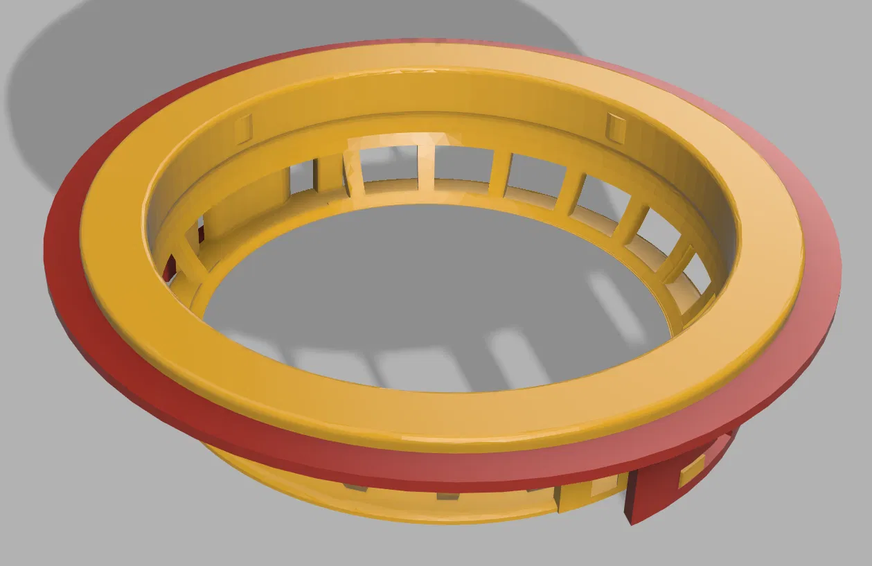 Bạn có thể in với vòng tròn bên ngoài (vòng lớn hơn) đặt nằm xuống trên bề mặt PEI nhám để các đường lớp đầu tiên không bị lộ, hoặc in theo hướng gốc của mô hình. Cả hai cách đều cần có support (theo mình thì support dạng cây sẽ tốt hơn).